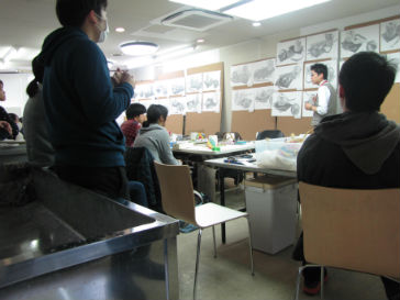 25 February 京芸入試 1日目 お疲れ様でした。 こんばんは。実技講師の上杉です。京芸入試、1日目が終了しました。 早朝応援に続き、入試後も試験を終えた生徒達の対応に、京芸まで行ってきました。入試を終え、少し興奮気味に、入試問題や制作の様子を話してくれる生徒達の話を聞いた中で感じた事は、皆、落ち着いて対応できているという事です。制作した作品に、不安な部分、やり残したと感じる部分があるのは普通の事です。どれだけ考えても、もやもやが消えることはありません。きっと上手くいっています。強い気持ちで、明日の立体試験に向けて切り替える事に集中しましょう。今日はとても寒かったですね。家に帰り、試験の疲れがどっと出ている頃かと思います。今日は早くに寝ましょう。明日に向けて、ゆっくりと休んでください。今年度の京都市立芸術大学の描写試験、色彩試験の入試課題は以下のようなものでした。<描写>「与えられた提灯1個、石けん1個、ネギ一本を台紙上に配置し、鉛筆で描写しなさい。」提灯は試験が始まってすぐに監督者の指示に従い組み立てる事。石けんは包装から出して描く事。包装はモチーフに含まない。<色彩>「与えられたみかんをよく観察し、滲(にじ)みの表現を取り入れて色彩で表現しなさい。」条件1.彩色には透明水彩絵具、不透明水彩絵具の両方もしくはそのどちらかを使用すること。2.描くモチーフはみかんのみとする。3.みかんは観察のため自由に扱ってよい。ただし、解答作品の材料として使用しないこと。上杉 [0回] 2016/02/25 (Thu) 20:54 アスクでのこと Comment(0)