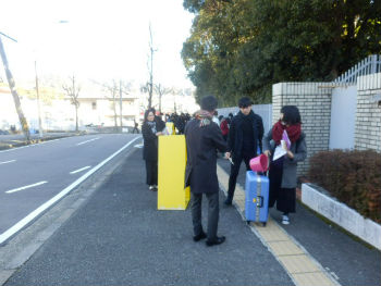 25 February 京都市立芸術大学 入試1日目応援! こんにちは。今日は国公立大学前期日程の入試が行われています。アスクからは、京都市立芸術大学の入試応援に駆けつけています。朝はガラスが凍るほど寒かったですが、交通機関に遅れや乱れはなかったようです。 アスク講師は、運搬していた生徒分のカルトンを受け渡し、最後まで応援を行いました。 開場を待つ列。落ち着いて入場していく姿が、いつもよりたのもしくみえました。 全員いつも通りの力が出せますように。心から応援しています! コジマ [0回] 2016/02/25 (Thu) 12:00 アスクでのこと Comment(0)