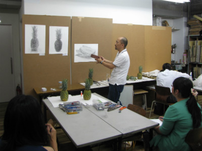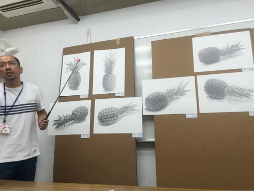 13 July 夏期講習が始まると、 本日より、京都アートスクール各校で夏期講習が始まりました。 北大路校は、南国フルーツのパイナップルがモチーフでした。またブログ記事でもお伝えしていますが、本日より一週間は日程調整期間です。受験生クラスと基礎生クラスの通学生は、今週中に消化できていない課題を消化してください。 以前、夏期講習中、実技に没頭できるように前期期間中に学科勉強をしておいて欲しいと伝えたことを憶えているのでしょうか?夏期講習中は、皆出来る限り実技に集中できる環境を保とう。多く語ると、外の天気も暑い最中、夏期講習に臨む生徒ら講師らの気持ちも熱く、なんだか暑くるしいので、一言だけ超クールな実感を書いておきます。一番初めは、七条教室長の上杉先生から聞いた言葉ですが、これホント。『夏期講習が始まると、入試まであっという間』 以上です。田和 [0回] 2015/07/13 (Mon) 18:53 アスクでのこと Comment(2)