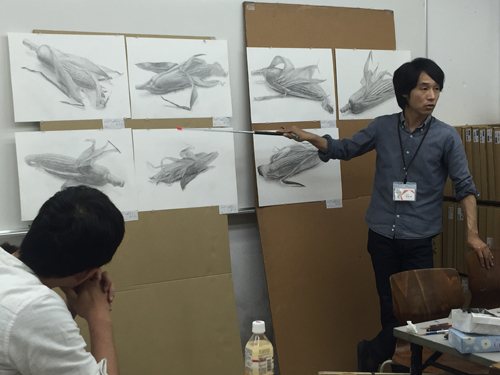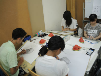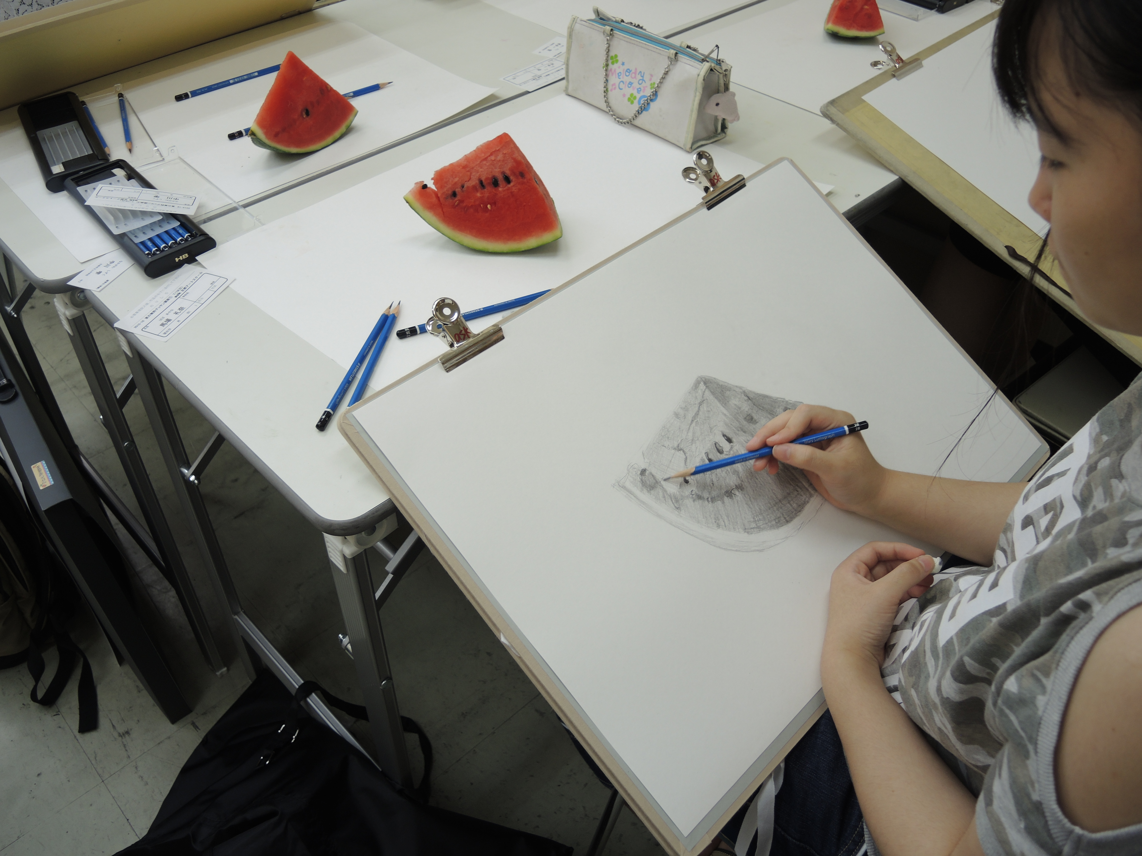 19 July 本日の無料デッサン講座 こんにちは。昨日は台風の影響で、かなり交通網に乱れがありましたが、皆なんとかアスクに通ってくれていました。さて、本日は無料デッサン講座が各校で開催されています。今回のモチーフはスイカです。まさに夏の顔ですね。 スイカは目に飛び込むような鮮やかな赤が印象的ですが、よく見ると果肉が毛細血管のようで、なんだか私はぞわぞわした気持ちになります。ともかく、普段何気なく見過ごしている様々なかたちに気づくこともデッサンでは大切なことですね。七条校無料デッサンの様子 夏期講習・振替授業の様子 本日で日程調整期間も終わり、明日から本格的に夏期講習が始まります。たくさんの生徒がいる中での制作はかなり刺激になると思います。また、上手くいかなくて身動きがとれないように感じることも多いと思いますが、夏期講習中は色んな先生が来てくださいます。たくさん相談してみてください。少しだけ見方が変わることもあるかもしれません。頑張りましょうね。和田 [0回]PR 2015/07/19 (Sun) 18:31 アスクでのこと Comment(0)