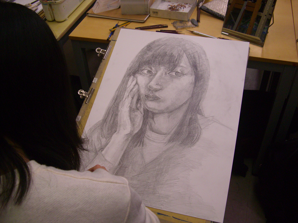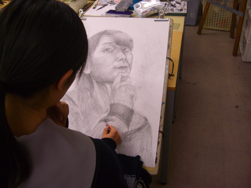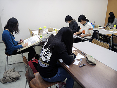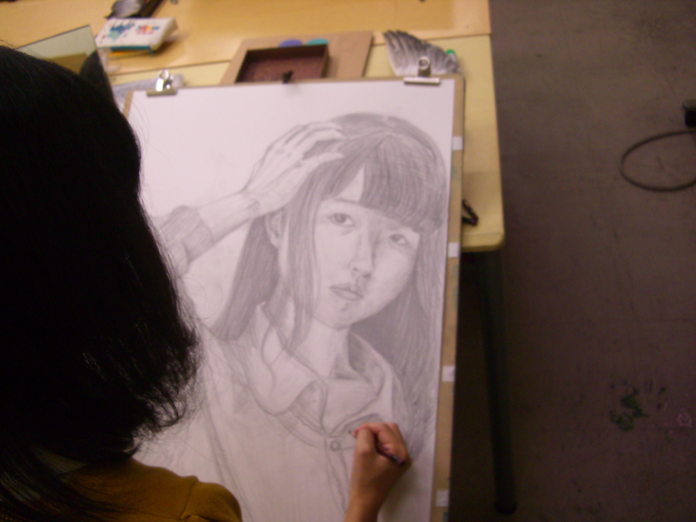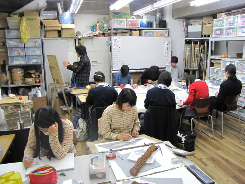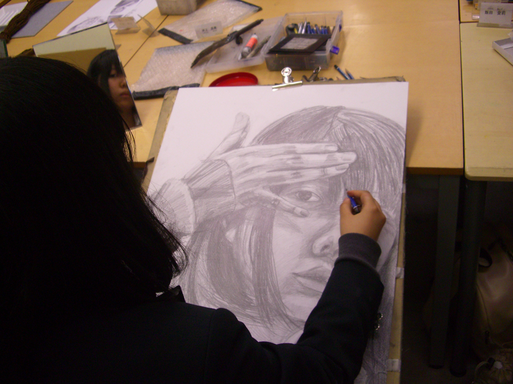 08 November 本日の彦根校 休憩になって、寒い寒いと二階から降りてきた生徒が、「先生、蛾が死んでるよー」と、知りたくもない情報を声高に教えてくれました。すでに蛾も死ぬるほど寒い彦根です。 さて本日、受験生の課題は「表情のある自画像」 「表情」と一口にいっても、顔の「表情」だけでなくいろんな「表情」がありますね。画面から受けるニュアンス、情緒、雰囲気、質感、温度、音……様々、これらはみな「表情」といって差し支えありません。正確な描写にプラスアルファの絵作りを求める課題です。なかなかの力作が揃いましたよ。林 [0回]PR 2014/11/08 (Sat) 21:32 アスクでのこと Comment(0)