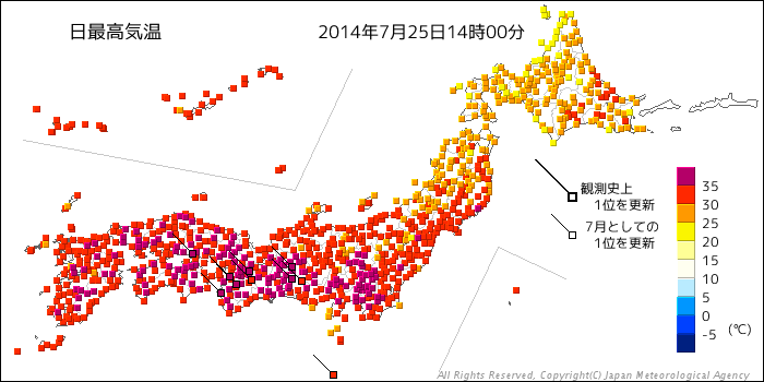 25 July 夏のイベント こんにちは、小島です。サウナのように暑い日が続いていますね。全国の最高気温を調べてみました。 (気象庁HPより引用 http://www.jma.go.jp/jma/index.html)35度以上が関西中心に多数。観測史上1位を更新しているところもあります。暑さが苦手なので、この図を見るだけで倒れそうです。どんな夏がやってくるのでしょうか。さて各地でオープンキャンパスが盛り上がってきました。7/19(土)、20(日)金沢美術工芸大学でオープンキャンパスが開催され、1,435名の参加があったようです。足を運び、周りの環境や雰囲気を感じることは大切ですよね。京都アートスクールでも説明会、行います。●8/17(日)京都市立芸術大学 説明会●会場=キャンパスプラザ京都オープンキャンパスと違う点は、「合格再現作品」の展示があるということです!!京都市立芸術大学は合格作品を一切公開していません。京都アートスクールがもつ合格再現作品・得点を公開するので、合格へのプロセスが見て、感じられる説明会です。定員がございますので、検討中の方はお早めにお申込ください。昨年よりも申込がとても多い状況です。小島 [0回] 2014/07/25 (Fri) 16:22 アスクイベント Comment(0)