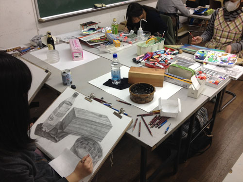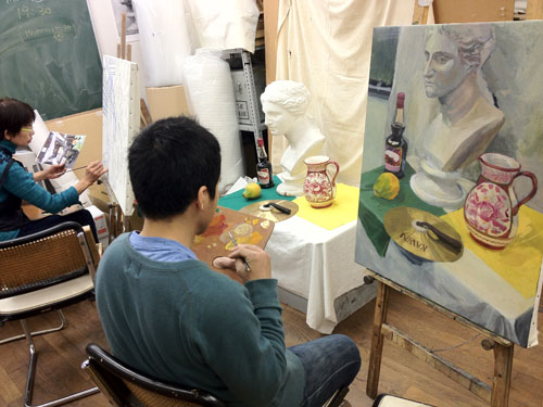 22 February 「国公立入試直前 ラスト1日の課題」 こんばんは保田です。 本日北山から、今週の月曜日にアップされた京芸ファイルについて今回の京芸ファイルのテーマは「京芸入試直前ラスト1週間の課題」です。ですので、あと「ラスト1日」の今ごろ紹介されても...ということではありますが...実は、今からでも遅くありません。というより、まさにこのタイミングで見てほしいページがあります。(京芸以外の国公立前期日程受験の方も参考に見てほしいと思います)それは3.入試前日まで 用具の準備と確認 です。美術の世界で、画材というものがどれだけ大切か、ということはみんなよくわかっているはずとは思いますが、入試となると、通常よりも数十倍、重要性が高まります。入試が始まった後、用具がない、なんてことになったらどうしょうもありませんからね。しかし、これも、既に準備万端のはずです。まさか、今から準備なんて人はいないでしょう。準備万端なはずの画材を、もう一回チェックしようということです。追加で買うとしたら明日しかありませんので...。ところで、道具の大切さ、ということは音楽やスポーツでも共通ですが、ソチオリンピックでも、いろいろトラブルがあったようですね。スポーツの場合は美術ではあまりない「壊れる」という危険もともないますからね。競技中に道具が壊れ、他チームの人の好意に救われた、などという話も聞きました。実は、アートスクールの過去の生徒でも、同じようなことを聞いています。他チームではなく、同じチームというかアスク生同士で忘れた画材の貸し借りがあり、助かったという話ですが...。しかし、その時は、結果として貸した側も貸された側も合格していたのでよかったのですが、それで貸した側が落ちて、貸された側が受かった...なんてことになったら...ものすごく気まずいですよね。想像したくない。(しかし、そんな場合は、それでも借りるべき)だから、今夜の時点で、もう一回画材のチェックをして、万が一足りないものがあったら、明日中になんとかしましょう。あと 4.入試当日 心構えと注意点 もぜひ見ておいて下さい。これを参照しながら、当日に起こりえることをいろいろ想像して、しっかり心の準備しておいてほしいと思います。 左)本日、北山校では美術倶楽部の授業もありましたが...やや受験生に追いやられ気味...? 風景画(油彩)を描いているNさんの表情が渋い...。いえいえ真剣なだけです。右)静物画(油彩)を描いているU君。作品を逆さにして壷の形の狂いをチェック。 だいぶんズレてるのがわかった。(これは受験生にもぜひやってもらいたいチェック方法です)保田 [0回] 2014/02/22 (Sat) 21:13 アスクでのこと Comment(0)