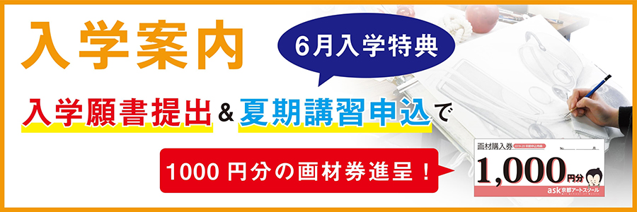 京都アートスクールでは、6月の途中入学を随時受け付けております。