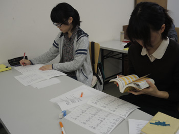 25 October もうすぐハロウィンですね。 こんにちは。事務局 兼 学科講師のナカニシです。金曜日は北山・七条の学科受講者を対象に「確認テスト」を行っています。本日の七条校確認テストの様子 やっぱり語彙力が一番大切です。点数が伸びないと悩む暇があったら単語を覚えましょう!「確認テスト」には単語/熟語の週と英・国実戦問題の週があるのですが、毎週、北山校と七条校の平均点を競い、勝った教室にはお菓子を持っていっています。何が食べられるかはその時のおたのしみです。完全なるナカニシchoiceのため、不評な日もあります(笑)今日は冒険しなかったので、みんなおいしそうに食べていました! よかった。 フランスのチョコビスケットです。来週の木曜日はハロウィン!!学科教室扉にはこんな張り紙が! 私もお菓子持っていきます。お楽しみに!ナカニシ [0回] 2013/10/25 (Fri) 12:21 アスクでのこと Comment(0)