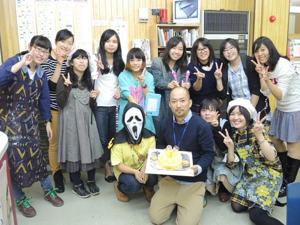 27 October 七条 授業の様子とサプライズ こんにちは。マシヤマです。久しぶりに七条の日曜授業に入りました。七条では基礎生の導入と講評を任されることが多い私ですが、あらためて基礎の課題って大切だなと感じます。毎回【自分で考える】ということをしながら制作してほしいのですが、本日の七条基礎生たちは、それができている生徒が何人もいました! 毎回自分で考える力=試験場で安心して制作できる力 となります。 おまけに本日、田和先生への誕生日サプライズお祝いがありました! いきなり田和先生へ発射口を向けてクラッカーを鳴らして始まりの合図をしてくれた女子達。 スクリームマスクの子が代表でケーキをプレゼント。いい笑顔。 厳しくもユーモアを持って指導してくださる田和先生!おめでとうございます!<マシヤマ> [0回] 2013/10/27 (Sun) 16:59 アスクでのこと Comment(0)