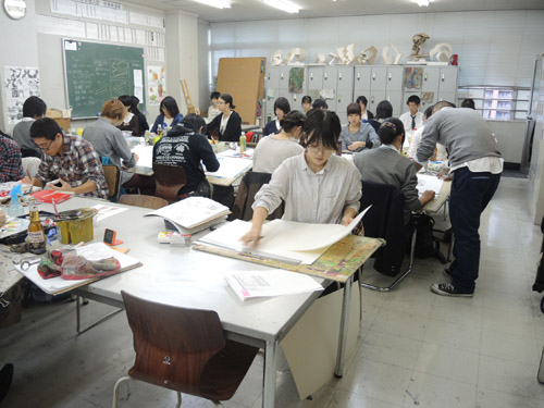 28 October 公募推薦入試が近づいています。 こんばんは。実技講師の上杉です。先週10月26日(土)七条校の様子。後期も第9週目に入りました。いつの間にか10月も後半を迎え、11月になろうとしています。秋の公開講座の「国公立芸大実戦対策講座」、「私立芸大実戦対策講座」、そして「京芸補強」。通常授業で出席している生徒+秋の公開講座を受講している生徒で、七条校は3F・4Fの両教室とも一杯一杯になっていました。おそらく今年度の七条校後期、ピーク日になると思います。 11月に行われる関西私立芸大の公募推薦入試。今年度、初めて行われる実技入試です。ASKからも多くの生徒が、受験する入試です。入試に向けて、教室のムードも緊張感が高まってきていると感じます。皆、集中力して頑張っている。この時期に、爆発的に実技力が伸びる生徒は毎年多いです。授業に入る講師もモチベーションが高まります。公募推薦入試の出願が始まっています。京都造形芸術学・京都精華大学・大阪芸術大学の出願期限は今週11/1(金)まで。成安造形大学は11/6(水)、京都嵯峨芸術大学は11/11(月)までです。各自、自分が受験する大学の出願期限を確認し、必要書類の準備、出願までなるべく早くに余裕を持って完了させるようにしましょう。上杉 [0回] 2013/10/28 (Mon) 21:40 アスクでのこと Comment(0)