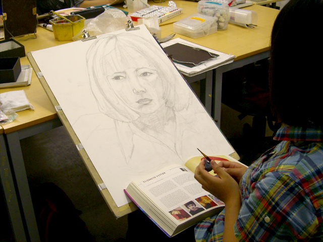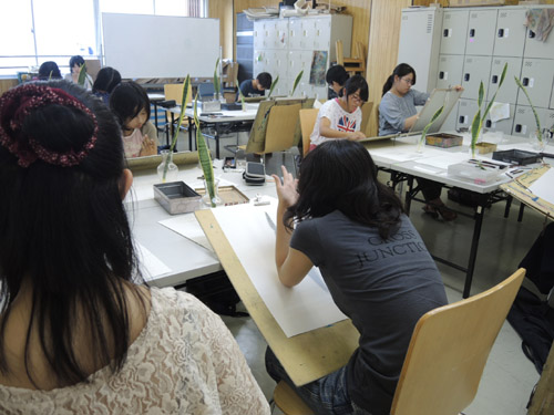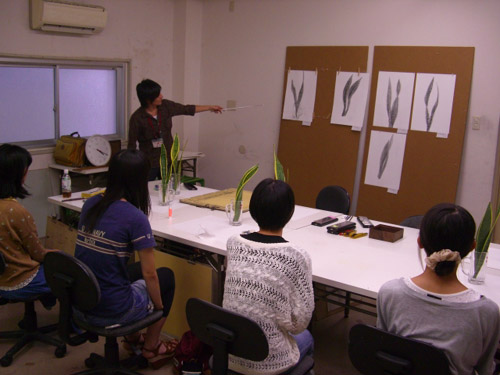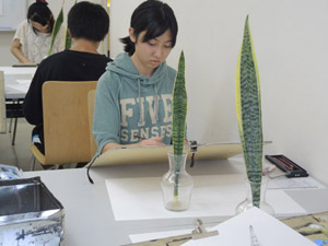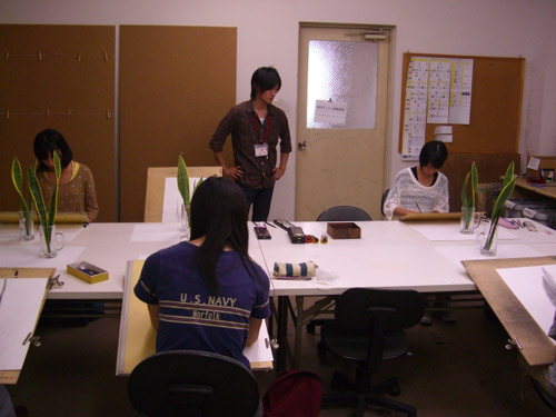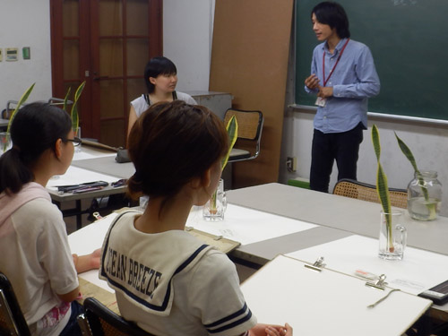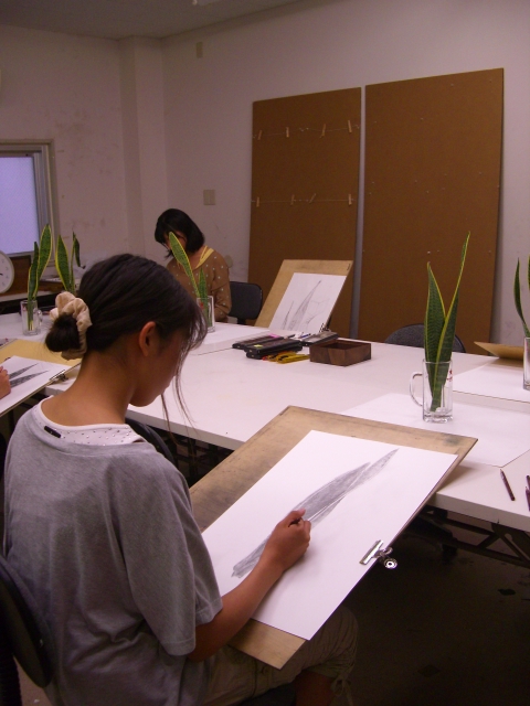 25 September 9・23(月・祝) 無料デッサン講座 報告! こんにちは。実技講師の上杉です。今日は、9月23日(月)、祝日の秋分の日に「京都 北山校」・「京都駅前 七条校」・「滋賀 彦根駅前校」の京都アートスクール3校で行われた無料デッサン講座の報告です。高校1・2年生、中学2・3年生、3校合わせて約30名の方々が参加されました。北山校の様子↓ 七条校の様子↓ 彦根校の様子↓ 今回のモチーフは観葉植物の「サンセベリア」。葉を一枚描くという制作でした。普段なんてことなく、当たり前に行っている「物を見る」という行為ですが、デッサンでは、ありふれた日常を、少し違った視点で観察する事になります。その中で感じる事が出来るのは「見える不思議」、「物がそこにあるという不思議。」デッサンはこの世界の不思議を、体感する事が出来る時間。夢中に描いている参加者の皆さんを見ていて、実技を学び始めた頃の自分を思い出し、そんな事を思いました。暑さが和らぎ、過ごしやすくなる季節です。1年間の中盤が過ぎました。少し落ち着いて、これまでの事と、これからの事が考えられる時期です。新しい事を始める時はいつでも不安がつきまといますが、自分の直感を信じて、一歩、踏み出して欲しいと思ってます。次回の無料デッサン講座は11月23日(土)に行われます。詳しくはこちら今回参加できなかった人も、是非参加して下さいね。上杉 [0回] 2013/09/25 (Wed) 12:50 アスクでのこと Comment(0)