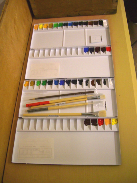 26 September 挑戦する3人 こんにちは彦根校の片岡です。突然ですが発表します!!実は京都アートスクールの講師3人でバンドを結成しました!!メンバーは私片岡と彦根校教室長、松野先生、そして北山校の林先生です。バンド名は未だ決まってません。募集中です!そしてとある休みの日に3人で早速スタジオ入りとなりました。場所は滋賀県の貸しスタジオの1室。松野先生と駅で待ち合わせをして、いざスタジオへ!(林先生はあとで遅れて来るらしい)今回が初音あわせであり、バンドといえども曲も未だない状態なのです。ここでまずは担当楽器の紹介をします。片岡-ギター(ギターしか弾けないというかギターもほぼ弾けません)松野先生-ギター、ベース、シンセ、etc(天才マルチプレーヤー)林先生-アナログシンセ、ギター、ドラム(ほぼ叩けない)見て分かるとおり、なにやるん?って感じなのですが、そこはまだまだメンバーも募集中ですし、これから形になっていく可能性に満ちた状態なのです!そんなわけでスタジオへ入ったのですが、何といっても初音あわせなのでバラバラであります。曲もないですし、皆好き勝手やりたい放題(特に片岡)で、結論を言いますと、でかい音を出したり、楽器を通してのコミュニケーションは楽しいなってことです。ASKのイベントで演奏できるよう頑張ります!!本文とは全く関係ありませんが、基礎生のおNEWのパレットです!浪人生の使い込まれた道具もいいですが、新品もいいですね! 片岡 [0回] 2013/09/26 (Thu) 20:12 非日常な出来事 Comment(0)
