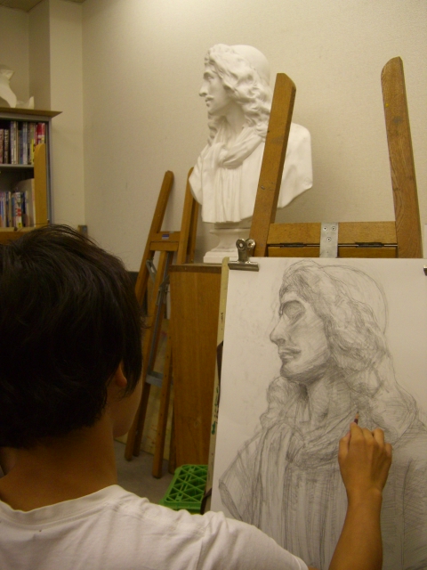 07 September 彦根クロッキー会!! こんばんは、片岡です。まずは彦根クロッキー会のお知らせです!模試などの影響で少し間が空きましたが彦根クロッキー会がはじまります!日程は【彦根クロッキー会】・・・・・9/14(土) 、9/28(土) 18:30~20:30【2013年10月~11月予定】・・・・・10/12(土)、10/26(土)、11/9(土)、11/23(土)各日 18:30~20:30詳しくは本日は下地に続き画材についてです。僕が受験生だった20年ほど前と今の受験生が使っている画材はあんまり変わってないなーと思いますが、やっぱり少しずつ変わって来てるのかなと思う事もあります。基本的な材料はほとんど変わってないですが、まず驚いたのはホルダー消しゴムです。こんな便利なものはありませんでした。でも使いすぎに注意して欲しいです。(いかにも使いましたって感じになるので)あと鉛筆の種類、ステッドラーだと6Bが1番柔らかい鉛筆で6Hが1番硬かったと記憶していて、6B(EBというのもあったような)は黒の質が違っていてデッサンでは使うなと言われていました。※ステッドラーは8B~6Hの16硬度らしいです。今はHiUniだと10Hとかありますね。あれいつ使うんですか…ほとんど針ですよ僕は受験生の頃、調子が悪いと画材に救いを求めて、鉛筆をかなりそろえておりまして。Hiuniとステッドラーが主流なのは同じ感じですけど、ファーバーカステルやスタビロ(黒が濃い!けどよく折れた)トンボのMONOシリーズ、ブラックポリマー999(これ使ってる人はなかなか見ない)など…受験生に道具に頼れとはあまり言いたくないけれど、道具で解決する事も結構あると思うので、いろいろ使ってみてほしいと思うのであります。作品では自分が受験生の時は20年前とかの石膏デッサンとかをみて古臭いなと感じてましたけど、今の受験生はどうなんでしょうか。僕にはほとんど変わってないと思えるけど、やっぱり古臭いなと思うんでしょうか。どうなんでしょう。今日の彦根校 片岡 [0回] 2013/09/07 (Sat) 21:22 アスクでのこと Comment(0)