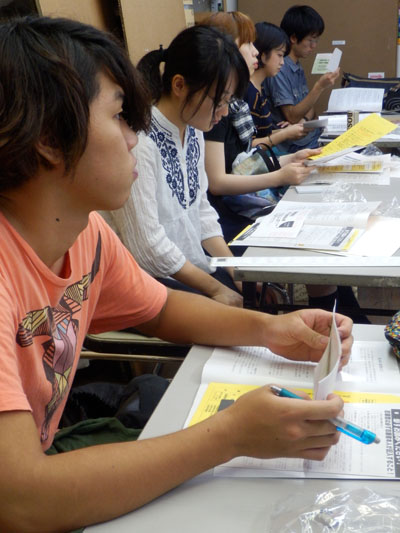09 September ST/SP生 後期授業開始 今日からST/SP生の授業が開始しました。下宿生が多い北山校の特権。実家へ帰っていた生徒が、地元のお菓子をお土産に持ってきてくれました♪ ・秋田限定の「ババヘラのミルキー」 ババヘラ… カラフルなパラソルの下で、ババさんがヘラでアイスを盛り付け、路上販売をしているのを 「ババヘラアイス」というようです。秋田発祥。・きりたんぽパイ・アーモンドパイ・スイートポテトカスタードパイ…などなど。盛りだくさんです。 **************************今日でセンター試験まであと130日となりました。北山校の生徒は、中西先生よりセンター試験に関する注意事項や、出願手続きの説明を行いました。 センターの出願の時期も近づいてきているので、受験生は資料が手元に届いたらすぐに中身を確認し、出願の準備を進めて下さい。■出願期間 平成25年10月1日(火)~10月11日(金)(消印有効) ※郵便ポストに投函してはいけません。 郵便局の窓口へ行き、「簡易書留郵便」扱いとして出してください。締切りぎりぎりにならないよう、余裕をもって準備し、10月1日(火)には郵便局へ行けるようにしましょう。上田 [0回]PR 2013/09/09 (Mon) 18:12 アスクでのこと Comment(0)