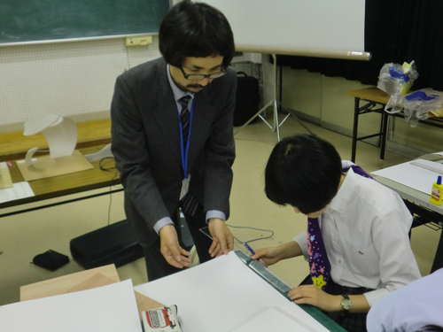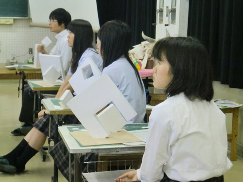 24 June アスクギャラリー こんばんわ 保田です。最近は、いろいろな高校に出張に行っています。『芸大受験説明会』だったり『出張授業』だったり。昨日は、日帰りで岡山県の総社南高校まで『説明会&出張授業』にいってきました。 『髪型がおんなじだ!』と盛り上がった生徒さんと 美術コースの生徒さんですが、立体構成ははじめてという生徒さんが多く、基礎的な出題ということで、「空間構成」をテーマにした課題に取り組みましたが、さすが美術コースなだけに、みんな飲み込みが早いと感じました。お疲れ様でした。ところで、いろいろな高校に行って説明会をする時、自己紹介として、まず最初にアスクのHPを紹介します。いくつかのページを見てもらうのですが、最も食いつきが良いと感じるのが『アスク・ギャラリー』です。やっぱり、みんな作品には興味がわきますよね。なので、「どうせアスクの宣伝でしょ」みたいな感じではなく、みんなしっかり真剣に見てくれていますね。で、毎週更新してるので、家のパソコンでもぜひ見て下さい、と紹介しています。まあ、その後、ホントに毎週見てくれるという生徒は少ないと思いますが、もしも、ホントに見てくれる生徒がいたら、すごく参考にはなると思うのですね。とにかく毎週更新だから、いろいろ見れるところがアスクギャラリーの良いところです。逆に、日ごろの制作記録なので、特別な傑作でもない、という面もありますが。必ずしもすごく傑作でなくても、作品を見ると、いろいろ考えることができると思います。それで、アスクに戻ってふと気になったのですが、アスク生もしっかり見てくれてるのかな。作品は、誰が見ても勉強になるものです。しかし、その同じ課題作品を制作した人が見ると、数倍勉強になりますね。アスクでは、各校で同じ課題を、少し日をずらして制作している訳ですが、出来てくる作品は、当然毎回、少しずと違っています。特に校舎別の傾向のようなものはあまり感じませんが。今年は、出張以外では、3校でちょうど同じぐらいの時間授業に入っていて、同じ課題を複数の教室で指導することも多いのですが、前の授業で、今ひとつうまく説明しきれなかったな、と感じることが、次の教室で出来た作品を使うと、説明しやすいな、と感じるような場面が多い。当然、そういった作品は撮影に回り、アスクギャラリーに掲載されることも多いのです。で、○○さん、この作品見てくれてるかな?見たらわかるんだけどな…。と思い出します。しかし、生徒原簿見て、家に電話するところまでは、ようしません、心の中で念じるのみです。アスク生の全員が、アスクギャラリーをしっかり見てくれるといいな、と。(アスクのばっかり見ろ、という意味じゃないよ。他予備校の作品も見て研究してほしいです)保田 [0回] 2013/06/24 (Mon) 01:54 アスクでのこと Comment(0)