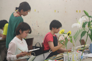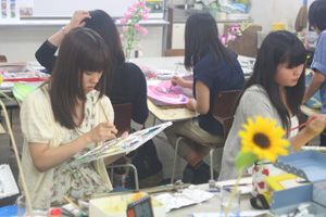 24 June 北山の様子 今日の北山校はお花の甘い香りがしていました。色彩表現の課題で、モチーフはガラスコップ(水入り)に入れた「花」です。色とりどりの花があり、教室の雰囲気がとても華やかになっていました。花には心身ともに健康になる効果があり、「色」や「香」がリラックス効果を与えるようです。 花を見て自分がどのように「感じるか」が大切で、幸福感を感じることが、心から健康になると言われています。が、花に囲まれているベストな環境で、花をモチーフに制作しているのって、どんな気持ちなんでしょう…「観察」という視点で見ているので、感じるとる余裕はないか。。なんと、今日はMさんがレンジでできるポップコーンを持ってきてくれました!時代遅れなのでしょうか…昔ポップコーンはアルミに入った容器を火で炙って作っていたので、正直、レンジでポップコーンができるなんてちょっとビックリでした。 Mさん美味しかったです!ありがとう(^^)上田 [0回] 2013/06/24 (Mon) 18:12 アスクでのこと Comment(0)