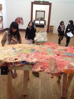 17 February 京都市立芸術大学作品展へ、皆と行ってきました。 こんばんは。実技講師の上杉です。昨日2月16日(土)、『京都市立芸術大学作品展鑑賞バスツアー』に、ASK4教室の高校1・2年生の基礎生を連れて、参加してきました。このバスツアーは、京都芸大の企画した高校1・2年生対象の京都芸大作品展を巡るツアーです。昨年に引続き今年も、ASKもお招き頂き、有志の生徒達を募って、参加させて頂きました。午前中は、京都市美術館にて展示されている作品を鑑賞し、午後からはチャーターバスで一路京芸へ。学内展を見に行きました。京都市美術館での作品展の様子↓↑ASk非常勤講師の服部先生の作品に思わず見入る生徒達。自分が教えてもらっている先生が、どんな作品を描いているのか。知る機会って意外と少ないですよね。ASK非常勤で活躍してくれている先生方の作品も多く展示されており、「より憧れが強くなった。」と話している生徒もいました。ここから下は、京都芸大で展示されていた学内展の様子↓ 参加した基礎生の皆が、驚きと憧れの眼差しでひとつひとつの作品を見ている姿がとても印象的でした。僕個人としては、ASK卒業生達の作品を見る中で、皆が頑張っている様子が垣間見れて嬉しかったです。基礎生の皆。これで1年間頑張れるね。明日からセンター学科勉強に向き合っていこう。実技もよりいっそうきびしく見ていくよ。寒い中、一生懸命、ガイドをしてれた京都芸大の学生さん達、どうもありがとう!京都芸大の入試科の皆様、お誘い頂き、ありがとうございました!上杉 [1回] 2013/02/17 (Sun) 20:50 アスクでのこと Comment(0)