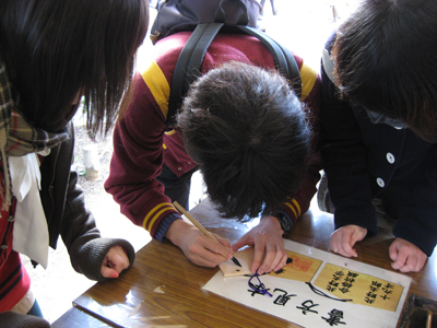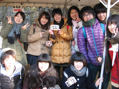 07 January 北野天満宮へ… 新年あけましておめでとうございます。本日1月7日の月曜日。おそらく世間の大半は昨日の日曜日で、正月気分と決別したことと思いますが、そんな中、しつこく正月気分をどこまで保てるのかストイックに挑戦しています。本年もどうぞ宜しくお願いいたします。はやしです。さて先日4日に彦根教室同様、京都では北山教室、七条教室合同で、初詣に行ってまいりました。参拝場所は学問の神様として受験生の信仰を集めている、北野天満宮です。北山教室を出発した途端、吹雪いてきたのでどうなることかと思いましたが、天満宮に到着するとおさまりました。ありがたいことです。祈願しておみくじ引いて ↓大吉!絵馬奉納そしてほおばる。さあ、受験生の皆さんは、間もなくセンター試験ですね。それが終わると今度は実技対策。怒涛の日々だけれど、へこたれずしつこくしつこくいきましょう。僕も正月気分の維持しつこく頑張ります。はやし [0回] 2013/01/07 (Mon) 16:25 アスクでのこと Comment(0)