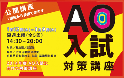 08 January 三学期 AO入試対策講座・マンガ特講、はじまります! 新年あけましておめでとうございます。実技講師の上杉です。今週末の1月12日(土)、13日(日)~、彦根教室・七条教室・草津教室にて、次年度のAO入試に向けた『AO入試対策講座』、『マンガ特講』がはじまります。AO入試対策講座は隔週土曜日、三学期期間の中で全5回。マンガ特講は、隔週日曜日、同じく三学期期間の中で全5回行われます。↓AO入試対策講座の詳細はこちらから■■■↓マンガ特講の詳細はこちらから■■■私大を第1志望としている高校2年生の皆さんにとって、一番大切な入試となるAO入試。次年度のAO入試まで約8ヶ月を切っています。まだ高校3年生ではありませんが、今のうちから受験生としての心構えを持つ事が必要です。AO入試対策講座、マンガ特講で育める「考えて創る力」、そして「創作した作品を伝える力」は、大学に合格する為だけの力ではなく、大学4年間を充実したものにする為に、大学に入る前に経験し、身につけておくべき素養であると強く感じています。国公立大学を志望している生徒の皆にも、是非、受講して欲しい授業です。考える事、伝える事の楽しさや難しさを、受講生の皆と噛み締めながら、一緒に成長していきたいと思っています。上杉 [0回] 2013/01/08 (Tue) 21:36 アスクでのこと Comment(0)