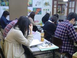 23 November デッサンの日ですよ~ こんばんは 彦根教室よりマツノです 本日「無料デッサン講座」を開きました モチーフは今が旬の柿! 13時から4時間ほどで描き上げていただきました もちろん初心者の方もいますので ・デッサンとはなんぞや? から始まり ・基本的な形ってどんなのがあるの? ・その利用方法は? ・立体を描くってどういうこと? また、今回はご要望にお答えして ・二点透視図法、三点透視図法 などなど、ちょっと技法的な面もあわせながら行いました 今回初めてお会いさせていただいた方 すでにask美術倶楽部の会員として来て下さってる皆さん 「普段とはちょっと違った、一歩進んだデッサン」 なんて言うとかっこよく聞こえちゃいますが 「絵を描くって楽しいじゃん!!」 と、思ってもらえたら良いなと思って進めていました 知れば知るほど面白い! アスクでは受験生だけでなく 一般の方に向けたイベントも開催しております 「創るを楽しむ」 それって良い時間の使い方だと思いませんか? 興味があれば少し覗きに来てくださいね でわでわ! [0回] 2012/11/23 (Fri) 21:28 アスクでのこと Comment(0)