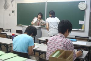 18 September 平成25年度 大学入試センター試験まで 122日となりました。今年度センター試験を受験する人はご存知だと思いますが、念のためお知らせします。■出願期間 平成24年10月1日(月)~12日(金) ※10月12日消印有効。■試験期日 平成25年1月19日(土)・20日(日)※高卒生は、「卒業証明書(原本)」が必要なので、事前に高校へ問い合わせなどをして書類の準備が必要です。※郵便ポストへ投函してはいけません。郵便局の窓口で「簡易書留郵便」で郵送してください。出願期間まであと半月ほどありますが、期限ぎりぎりになって焦らないよう準備をしてください。************************************今日の北山の学科授業は英語です。授業前~授業中の様子。英語担当の中西先生は、今日は随分朝早くから教室へ来て学科授業の準備し、生徒を待っていました。写真だと一歩も動いていないように…見えますが、実際はたくさん動き回って準備されていました。授業が始まる前の時間を利用して、自習などで分からなかった点を学科の先生達へ質問しに言ってくださいね。また、「当日完結」を目指し、授業内で分からなかった点を授業後に先生へ聞きにいきましょう!センター試験、一点の違いだけでも入試結果に大きく影響されます。その一点だけでも上がるよう「分からない」ところは残さず、先生に質問するなどして解決してください。後期に入ってからの自習室利用率が高くなりました。無理して体調崩さないようにしてくださいね。上田 [0回] 2012/09/18 (Tue) 18:45 アスクでのこと Comment(0)