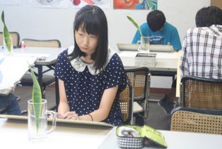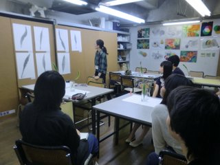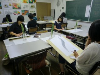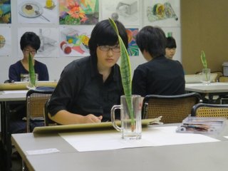 19 September 無料デッサンの報告 <北山教室> こんばんわ。 最近はすっかり長袖です。マシヤマです。 今日は、9/17(月)にアスク4教室で同時に開催された【秋の無料デッサン】のご報告です。 北山教室では7名、と少人数でしたが、とても集中して制作できていました。 モチーフは『サンセベリア』という観葉植物の葉が一枚。 葉が集合した図はこんな感じ。 去年の【無料デッサン】にも参加してくれた講習生もいて「あ!去年もこのモチーフ描いた!」となったのですが、残念には思わないでほしいです。むしろ喜んでよし! なぜなら、前回の作品と並べて見て『どれだけ成長しているか』を確認できるからです。 講評では葉のうねりの捉え方と、台面(モチーフの着地面)を利用して手前から奥までの距離を把握する話などをしました。 短い時間だとデッサンの一部の話しかできないのでもどかしい気持ちもあります。 でも、まずはどんなモチーフでも楽しんで描けるようになってほしいと感じます。 さて、今回のモチーフは微妙に違う『緑色』を描き分けることも大切でした。 違う緑がたくさんあるように見えるけど……本当はどうなんだろう? 緑に見えているのは人間だけ?それもと私だけ?と思ったことがある人へ! 昆虫から見たら、花はこんな風に見えるらしいですよ! 全然違う!!! <マシヤマ> [0回] 2012/09/19 (Wed) 19:37 アスクでのこと Comment(0)