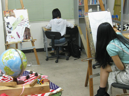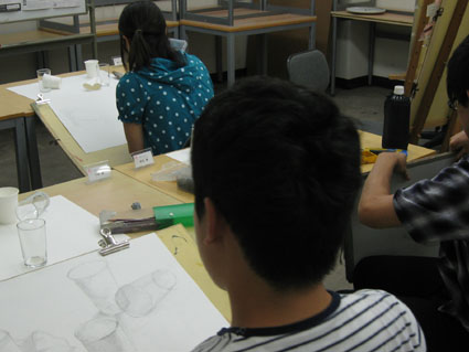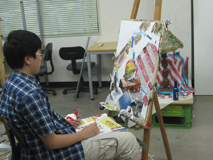 10 September 彦根教室 美術史授業 彦根教室ST生 コラージュ用モチーフ (星条旗の上に地球!)本日は美術史の講義のため彦根教室に行きました。アスク美術史では毎回、歴史上の特定の時代、地域に焦点を当て、その中の面白い作品や作家、その評価を紹介しています。西洋美術史、日本美術史などと、範囲を大まかに絞ったとしても、受験生に与えられた時間を考えると、通史を学ぶことはとうてい無理。なので面白いポイントのみを紹介しています。どんな民族や国家にも、文化が燃え上がる時期、崩壊する時期、復活する時期、平凡な時期、など、紆余曲折がある。それらをひっくるめて、学んでこその歴史ではありますが、じっくり学ぶのは大学に入ってからとして、とりあえず、時間の少ない浪人生には、面白い(時代や地域、テーマなど)ポイントだけを紹介し、さしあたり、現在必要な知識やアイデア、技法を学んで欲しい。ついでに言えば、大学に入ってからもっと勉強したいと思えるようになってもらいたい。みんなが前提となる知識を持っているので、わかりやすい、入り口として適切という意味で、最初は、イタリアのルネサンス時代を、また、日本人なんだから当然学ぶべき、ということと、京都や滋賀にはお寺などが多く、その気になれば実物が見られる、また京博(京都国立博物館)や市美(京都市美術館)などで力を入れた取り組みをやっていることが多く、それに便乗する(というと聞こえが悪いが、実際実物が見られるチャンスなので活かしたい)ことができるということで、日本美術史は取り上げています。(美術史関連企画として、「狩野永徳展」や「長谷川等伯展」など行ったりもしてます)ブログなんで、これ以上の解説は無理ですね。というか、すでに無理やりな感じ…。ともかく…今回は、日本美術史として、仏像を取り上げました。テーマは仏像ですが、その前提として、日本の建築や庭園、代表的な絵画を見てもらいました。最初桂離宮と日光東照宮の写真を見せ、ドイツの建築家のブルーノ・タウトが桂離宮を絶賛し、東照宮をこきおろしたのが、日本人自身の日本建築評価に大きな影響を与えている(外から評価された後で日本でも評価、というパターンが多い)という話から、そのような評価が出てくる元になっているモダニズム(近代主義)の価値観の話、モダニズムの機能主義からは装飾的なものは評価できない、受験の立体構成の評価は、今も、基本はモダニズムの価値観が中心なので、「装飾はダメだ」と言われる、などという具合で、受験に直結する話もはさみつつ展開。 慈照寺(銀閣寺) 日光東照宮 陽明門 このお城は?しかし、彦根ST生、なかなか優秀ですね。京都のお寺や庭園から東照宮まで知っていました。日本史しっかり勉強してたようです。中でも2人の女生徒は歴史好きとのこと。いわゆる「歴女」ですかね?しかし…。「このお城は?」 最も重要な建築がわからない。ちなみに近世以降の城郭建築も重要な日本文化です。答え:国宝「彦根城」です。前期、写生に行った玄宮園の写真を見たらさすがに気づいたようですが。彦根城域の中にある彦根東高校出身のS君が苦笑いしていました。灯台元暗し。というか、この彦根教室からも歩いていける距離です。(試しに帰り写真にとったら1枚のアングルに納まった)今回の授業参加者は全員京芸志望とのこと。だったら、京都の仏像と寺社仏閣は来年以降、彦根城は今年中に、ぜひ行ってみてほしいと思います。保田(草津教室より) [0回]PR 2012/09/10 (Mon) 21:02 彦根教室 Comment(0)