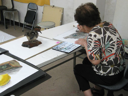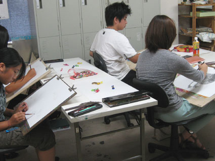 07 September チャンスの前髪 我家には、黒猫一匹と、庭の蹲に金魚が2匹おります。みな元気にしております。黒猫は十三歳、大学に入学した年に大学の敷地で拾いました。金魚は今年6月、宇治の祭ですくったものを持ち帰ってきました。夏を経て随分と大きくなりました。彼らとも、縁あって出会い、今の私の家における生き物との密な共生空間があるのです。さて、ASKの話題に戻しますとモチーフを観察すること参考作品を見ること日々の課題内容を咀嚼し、把握すること指導内容や講評をメモしたものを、後で読み返し、思い出してみること学科の勉強家であった会話電車で見た風景テレビで観た番組本、マンガを読んで共感したこと映画、レンタルDVDで観たこと等等...これらはどれ一つとっても、誰かにとって、とても貴重な出会いの瞬間だったりするわけです。日常はけしてルーチンワークではないのです。毎日が同じに見えてきたらピンチ!お尻を叩いて眼を覚まし、見方を変えてみる。日々の出会いを蔑ろにしていると、目の前に現れたチャンスの前髪を“むんず”と掴めそうな好機や、またとない出会いの機会が訪れたとしても、それに気付けないほど人は鈍感になって行くものです。ASKのみんなは、日ごろ何に興味を持ち、どんな情報や内容をインプットしてますか? また教えてください。 そうした会話を通して、みんなにとって受信しやすい言葉、表現へと先生方の指導の言葉も変わってくるのだと思います。チャンスの前髪を“むんず”と掴むこれは僕が浪人のときお世話になった先生の言葉です。ささくれ立っていた二十歳の浪人生の心を、むんずと掴まれた瞬間でした。田和追伸、最近、彼が祖国ブラジルで絵を描いていて、彼を追ったドキュメンタリー映画があると知りました。「下手に描きたい 画家森一浩・ブラジルの挑戦」 監督:岡村淳http://www.100nen.com.br/ja/okajun/000044/20100503006405.cfm [0回] 2012/09/07 (Fri) 17:16 アスクでのこと Comment(0)