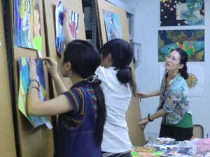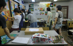 10 August 第一回 立体DAY in 草津教室 本日、草津教室は 立体DAY でした。 なんと全員が立体構成でした。たぶん、はじめてのことです。(立体じゃない生徒が休んだから、ということもありますが…)京芸受験クラスは粘土でチンゲンサイを制作、基礎クラスは割り箸100本による構成では、簡単に結果を報告します。京芸の方は、写実表現が求められた課題なので モチーフと見比べながら講評を行いました。 左)Yさん。形の大きな流れが捉えられています。その結果 チンゲンサイ独特の形の魅力が表現できています。(実は最初のが悪過ぎ、モチーフ買い直しを命じた)が、細部の描写が…全然足りません。スピードアップしないと。 右)K君。葉の部分の起伏をしっかり観察描写できており 葉の厚み(薄さ)が伝わってきます。今回、最も良かった作品。 ただ、全体のシルエットはやや単純化してしまってるようです。 左)Fさん。これも、しっかり造形出来た作品ですが…やはり細部の描写がまだ甘い。 中)Oさん。茎と茎が重なることで出来た「隙間」が、粘土を引っかいた「穴」に見える。それは、つまり細部まで変化が追いかけられてないということ。 右)Hさん。これはまったく間に合ってない。鉛筆描写はかなり上手いHさんなのですが…。立体では失敗が続いていますね。夏期後半、なんとかしよう。さて、基礎の2人は…。左)Tさん、右)Sさん。描写・着彩・色彩も上手いが、特に立体には積極的な二人のように思います。特に、先週の「アーチ」は二人ともすごく良かった。しかし、今回は、自分がつくりたい立体のイメージが先行して、今回渡された材料 からの発想、という観点が後景に追いやられてしまったような印象でした。 時間内にしっかり完成させたのは、さすがですが…。 という訳で、第一回 立体DAY in 草津教室は無事終了しました。 そして、来週の水曜日(8/15 18:30~)には (アスク4教室中、最も豪勢なグルメイベント!?) 草津教室第1回イベント「粉もの&フレッシュジュース大会」at草津教室があります。 こう、ご期待。保田 [0回] 2012/08/10 (Fri) 21:22 滋賀・草津駅前教室 Comment(0)