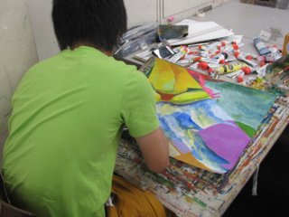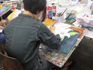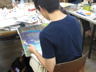 02 August 北山京芸クラス 午前中 こんにちは。 夏が一番好きなはずなのに、今年は暑さにやられているマシヤマです。 夏期講習が始まって2週間が過ぎました。 ここからさらに難易度もバリエーションもアップしていきます! みんな!身体に気をつけてついてきてよ☆ さて、今日の北山教室は色彩課題なのですが、面白いことに気付きました。 『自分の画面に使う色と、着ている服の色が似ている』 ということ!! 偶然かもしれないけれど、偶然ではない気がします。 同じ人間が選んだ色なんだから、好みが全面に出るのが当たり前。 よく「色彩は難しくてわからない」という声を聞きます。 「何を描いたらいいの?」、「何色を使ったらいいの?」、「どうしたらいいの?」と……。 私は「一番好きにできる課題じゃないかな?」と思います。 どうしても何も浮かばない人は、テーマを聞いた瞬間に頭に浮かんだモチーフや色を使えば良い。たとえそれが安直であっても、何も浮かばないよりはまし。 まずは好きな色だけ使ったって良い。好きな服を選ぶように。 それでも何も浮かばない人は……困りましたね。 そういう場合は、何かをマネしましょう! 一度何かをパクッて 模写してみるのも勉強になりますよ。 エドゥアール・マネ作 『笛吹く少年』 (「マネの真似です!!」:『少年H』より) さらに……講習生M君とS先生は立体について話しています。 そして……京芸クラス【総合芸術】のKさんは描写を強化中。 <マシヤマ> [0回] 2012/08/02 (Thu) 13:20 アスクでのこと Comment(0)