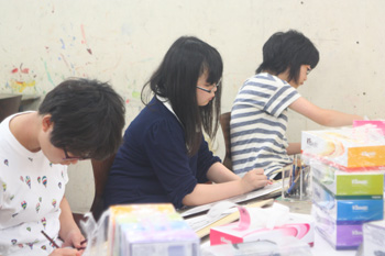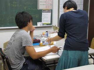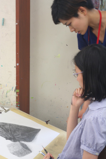 01 August 草津教室 2012・8・1 こんばんわ 今日は草津教室の様子を紹介します。 こんな感じで、アスクの中では最小の草津教室も満員に近い状況でにぎわっています。 第3期間は、京芸対策4名、国公立対策2名、AO対策5名、基礎2名 合計13名が対策を行っています。(明日は週1で来られるNさんが来られるので14名)その中で今日は特にAO対策と京芸対策を紹介します。 ◆AO対策 志望コースはそれぞれ異なりプロダクト、キャラクター、マンガ、現代美術・写真など様々。しかし、具体的にやっている対策課題は異なっても 内容的には重なる部分が多く、隣の生徒に指導している内容 (例えば、デザイナー、エンジニア、職人の違いとは?なんて話)を別の生徒も聞いていて自分の制作につなげたり、ということも多い。 それぞれ、資料となる本や雑誌など持参していますが 途中でネットで資料探しということもある。 しかし、調べ出すと、それだけで時間をくってしまうので要注意。 そして、最後のプレゼンは全コース共通で行います。正直、まだまだ安心できない。ラスト数日での飛躍が期待されます。しかしプレゼンといっても大切なのは、内容。内容がしっかりしてれば、伝えるべきことも明快で話しやすい。内容のないものを「しゃべくり」で誤魔化すことはできません。しっかり考えることが大切です。 ◆京芸対策 1日2課題着彩描写。 着彩は試験科目からは外れましたが、対策は必要です。 着彩をすることで、描写力が鍛えられるという面がありますし 色彩でモチーフ構成が出た場合、着彩力は非常に重要となります。 午前は基礎力強化、ビール瓶の描写。これはなかなかうまくいったと思います。 導入ではアスクギャラリー掲載の作例(別教室では既に実施されていた)を利用できたのもよかった。 しかし、午後のより実戦的な「簾、カラーボール3個」は、もう一歩の出来。 明日の色彩課題(モチーフ構成) ※これも今週のアスクギャラリーに作例あり では、カラーボールがモチーフの一つです。 本日の経験を活かして、うまく表現してほしいと思います。 保田 [0回] 2012/08/01 (Wed) 20:57 滋賀・草津駅前教室 Comment(0)