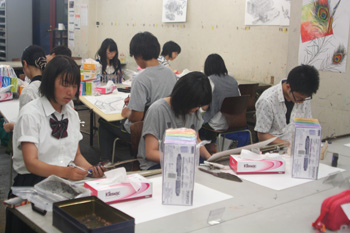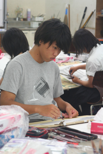 04 August 夏期講習 第4期間開始! 8月に入り、夏期講習もあと数日で折り返し地点となります。夏期講習中の対策は、自分のイメージしていた様に進んでいるでしょうか?イメージするのは自由ですが、それを実行・行動にすること一番大事です。自分がはじめに決めた意志を、最後まで貫き通してくださいね。 さて、夏期講習中の各教室の様子ですが、今までのブログの写真を見るとおり、教室が生徒でいっぱいの状態です。七条教室は先日がピークを迎えていましたが、北山は京芸模試の日をはさんで、第5・6期間にピークを迎えることとなります。定員ギリギリの状態ですので、これから受講を考えられる方は,一度北山本部までお問い合わせ下さい。遠方から来られる方が居たり、普段は別の教室で対策をしている生徒がたくさん来ます。折角の機会なので、講習期間を利用して実技対策をしながら友達も増やしていってほしいところです。アスクの縦と横の人間関係はとても繋がりが深く、大学に入ってからもその関係は続いていきます。ちょっと勇気を出して、隣近くに居る人に声をかけてみてください(^^)先日、初めて愛知県立芸術大学のOCへ行ってきました。 去年の通学生Kさんと配布をし、そのあと大学の案内をしてもらいました。デザイン科の1回生の制作したプレゼンテーションを聞きましたが、コンセプトが明確で、伝え方も聞いていてわかりやすく、プレゼンテーションの上手さにびっくりしました…!上田 [0回]PR 2012/08/04 (Sat) 21:03 アスクでのこと Comment(0)