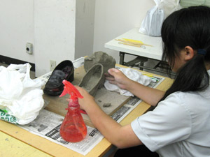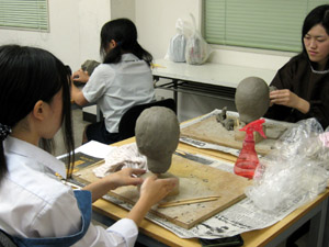 13 July はじめまして。 初めてブログを書きます。はじめまして。彦根教室より、非常勤講師の福井です。今年の3月に成安造形大学の洋画コースを卒業しました。現在は仕事に、自分の制作に、と慌しい日々を過ごしています。ASKでは彦根教室中心に入っていく予定です。これからよろしくお願いします。*さて、今日の彦根教室の様子です。あいにくの雨のため湿気でムシムシしますが、みんな頑張っています。 塑像の人物の制作では、自分の顔ではなく、パートナーを組んで相手の顔を制作します。普段の制作とは一味違い、相手を良く観察し、お互い見つめ合いながらの制作・・・ちょっとドキドキしますね。講評後は、お互いの作品を撮影し合うなど、とても楽しんで制作できた様子でした。この後潰してしまうのが、とても残念です…。さて、もうすぐ夏期講習が始まりますね。AO入試を受けるみなさんは入試直前です。アツイ夏がやって来ます。頑張っていきましょう!(福井) [0回] 2012/07/13 (Fri) 20:26 アスクでのこと Comment(1)