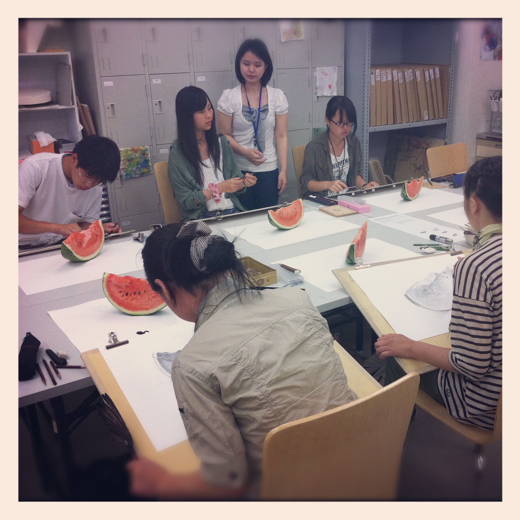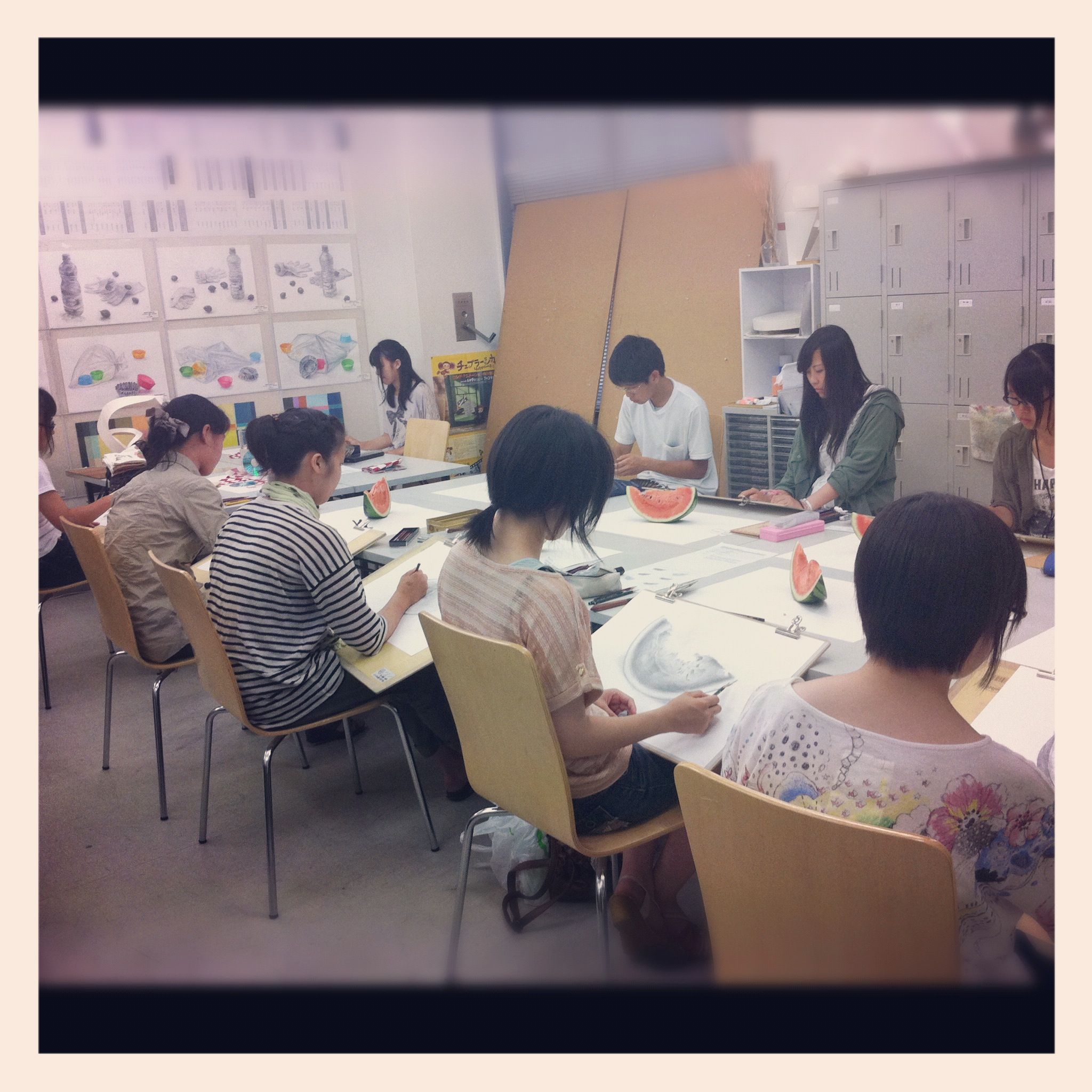 15 July 7/14夏期講習スタート! 本日、草津教室勤務でしたサイトウです。 今日から夏期講習スタートです。 初っ端は、授業と並行して「無料デッサン講座」が行われました。 昨日ブログに登場してくれた福井先生とともに指導に入りました。 あっという間の4時間。 全文メモをとるくらいの勢いで講評をきいてくれて感動。。 実際、それぞれに気づきがあったいい制作だったと思います。 その後は志望校についての面談。 現実問題として、高校の卒業後、どう自分のコマをすすめるか、 先延ばしにせず、避けずに向きあうのは大事ですね。 向き合って葛藤しながら成長する。 そういう成長を見れるのはなにより心地いいな思います。 (なんせ、自分がぐずぐずぐずぐずしてた方やけんなぁ…) こちら、前期日程調整期間としてきてくれている3人。 夏期講習京芸描写クラスで来てくれていた方々を撮り忘れた… 満員の草津、初日から活気があってよかったです!! 夏はとにかく暑いががんばろう! <サイトウ> [0回] 2012/07/15 (Sun) 00:05 アスクでのこと Comment(0)