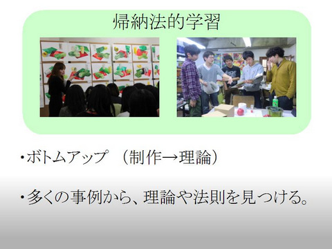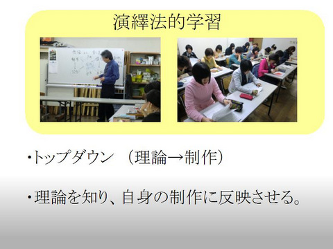 そして【帰納法的学習】は、何枚も制作する中から、同じ課題を制作した他の生徒の作品を見る中から、理論や法則を見つけだし制作につなげていく学習です。