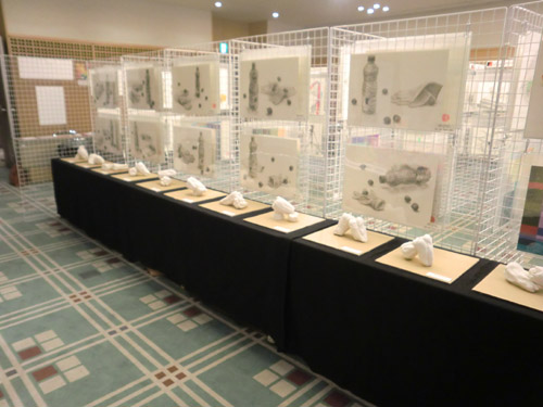 19 April 京芸ファイルアップ!! こんばんは、草津教室長の保田です。 今夜は、京芸ファイルについて。 といってもアップしたのは日曜の夜なので もうみんな見てくれたと思います。 今月の内容は FILE098:2012年度 合格作品を見る(色彩第2課題・立体) 色彩と立体の再現作品の紹介です。 前回同様、得点はまだ出していませんが 合格作例と、作者のコメントを紹介しています。 例えば… 工芸科合格者(現役)作例 美術科合格者(高卒)作例 美術科合格者(高卒)作例 デザイン科合格者(現役)作例 京芸ファイルでは4点ずつ紹介しているのですが 4点のセレクトには毎回苦労しています。 結果としてはランダムに選んでも大差ないのかも しれないのですが 様々な傾向の再現作品をなるべくバランスよく 紹介しようと考えています。 また、科や現役合格者・高卒の合格者のバランスも考えたり 面白いコメント、受験生が参考になるコメントをなるべく紹介したかったり… 選んだたった4点から「これがアスクの傾向か」と決め付けられたらどうしようか など悩みながら選んでいます。 『だったら4点といわず、もっと見せろ』と突っ込まれそうですが…。 そんな、あなたのために今回は特別に蔵出ししましょう。 今回紹介できなかった傾向の作品です。 斜線による分割&塗りムラ モザイク状 すごくシンプル どう見ても条件違反!? ※ちなみに、京芸の場合、いずれかの科目の得点が著しく低くても 他で大きく稼いで合格する可能性が十分あります。 まあ、そのあたりについては、次回の京芸ファイルまで待って欲しい。 大胆な構成! 台座付き 3月20日キャンパスプラザ京都で行われた説明会では かなりの数の作品を展示したのですが 今後はなかなかその機会がありません。 アスク各教室には数点ずつ(北山教室はもっと多い)は展示していますので 見学に来てもらうことは可能です。(一応、事前に電話してね) それと、5月~7月にかけて 各地の高校、研究所などで アスクの「芸大受験説明会」が行われる予定です。(現在計画中) そこにはたくさんの合格再現作例(京芸に限らずです)を持っていきます。 出張授業が行われる場合もあります。 昨年の「芸大受験説明会」の様子 ブログを見てくれている人で もし自分の高校でアスクの「芸大受験説明会」が行われるという 情報を得た人はぜひぜひ参加して下さい。 保田か坂口が行きますので、気軽に声をかけて下さいね。 保田(春はいいね!でも浮かれすぎず勉強もしっかり!) [0回] 2012/04/19 (Thu) 22:05 アスクでのこと Comment(0)