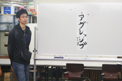 15 April 草津のこりの書初め 草津教室の様子です。今日は昼休みに、まだ書初めをしていない生徒が筆をとりました。僕もまだだったので混ぜて書かせてもらいました。上手い下手いろいろありますが、しかし、なによりこれは表明なわけです。そして、しばらく貼られて残ってしまう。これは緊張しました。前の晩から何を書こうかと、必死で考えました。これが、なかなか出てこない。この三十うん年間、表明というものから逃げて逃げておよび腰で生きてきた僕です。もうそれは強靭なおよび腰で人生を突っ切ってきたところへの表明の場ですから、困りました。清清しく、なあんにも出てこない。みんな迷いなく、すっすっと書いていてたいしたものだなあと思います。僕は結局、書く直前までウジウジ考えて、字もウジウジしてしまいました。(結局、高杉晋作の辞世の句にしました)書いてある言葉もそうですが、字には出ますね、その人となりが。きれいな字、そうでない字にかかわらず、その人の「感じ」がわかります。はやし [0回] 2012/04/15 (Sun) 19:30 アスクでのこと Comment(0)