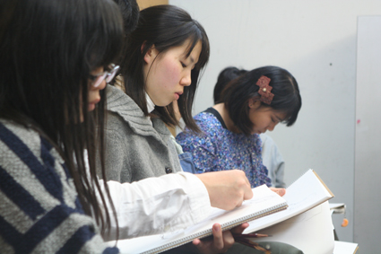 13 April 北山の様子 前期一週目がスタートして、ようやくSTSP生の1週間が終りました。 土・日はオープンアトリエで自由制作ができるので、 是非活用して、「作品」を仕上げて欲しいな。 モチーフや課題を自分で設定して。 もちろん、平日の課題の手直しなどもしてよい時間です。 今週は北山にいることが多かったサイトウです。 自己紹介&今年の抱負を書道でしたたた月曜日。 Uくんアグレッシブ… Mさん下克上…笑 サイトウは説明を聞いてない分、ちょっとおもしろいなぁ。 火曜・水曜はクロッキーをして。Uくんのアグレッシブな?モデル笑 モデルは順番に持ち回り そうそう、学科も午前中に受講して。 デッサンと色彩の制作と講評がありました。 最近、思うのはアスクに来てる子は、やっぱり好きなことしに来てるので、 さぼらない。手を抜かない。当たり前のようだけど、そういう学生集団っていいですね。 さめてる人がいたら、少しずつ基準が下がって、全体の熱が冷まされてしまう。 一人一人が熱心っていう空間は心地いいですね。 そんな熱をよりたぎらそうと今計画中なのが、 叉(SP生 Wさん)との美術年表の作成。 作成スタートは17(火)の昼休みから。の予定。 学科教室で、お弁当ついばみながら…の予定。 社会の動向と美術史の関連とかを見ていけるとおもしろいなって思ってます。 1人じゃ勉強のモチベーション続かないので、みんなと勉強できた方がうれしい。 保田先生とか詳しいのでときどきレクチャー受けられたらいいなぁ。 続けれなくなったらなったで頓挫するもよし、と思って、 気楽に始めていきたい。 夢はこんな年表つくること。。 ビジュアルと文字があわさって、なおかつ機能もある…。 素敵だ…。 興味ある人は、ぼちぼち一緒にやりましょー <サイトウ> [0回] 2012/04/13 (Fri) 17:53 アスクでのこと Comment(2)