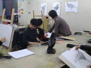 14 April NETモチーフ 本日発送! こんにちは。実技講師のマシヤマです。新学期が始まり、早くも(?)第1週が終わろうとしています。前期授業の残りはあと12週! そのあとすぐに夏期講習!……とすみません。焦らせるつもりはありませんでした。ただ私は、一日一日を無駄にせずに過ごしてほしいという気持ちでいます。長いようで短いですよ、1年って。本日はNET通信実技講座のモチーフ発送がありました。週明けにはNET生の皆さんの元に届くと思います。楽しみに待っていてください。NET生は通学生よりも課題数が少ないですが、しっかりと制作をおこなえば対策が足りないことはありません。講師が描き込む添削シートは、ポイントが整理されており、講評を聞きながらメモをとるのとはまた違った効果があります。 『発送を待つ段ボールの山』本日の通常クラスの様子はこちら。(他教室と同じく 鳥の剥製を描写中)写真中央で指導にあたっているのは、今年から新たにアスクの講師陣に加わったK岡先生です。 こちらは土日限定のオープンアトリエの様子。大教室の前という狭いスペースですが、熱気があります。オープンアトリエは参加自由です。指導はほとんど入りませんが、まさに自分がやりたいことをできる貴重な時間。有意義に使ってください。<オープンアトリエ……土曜=14:00~20:30、日曜=10:00~17:00><マシヤマ> [0回] 2012/04/14 (Sat) 20:53 アスクでのこと Comment(0)