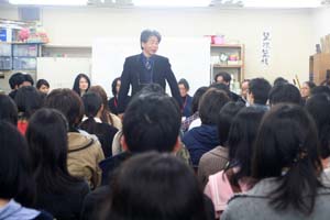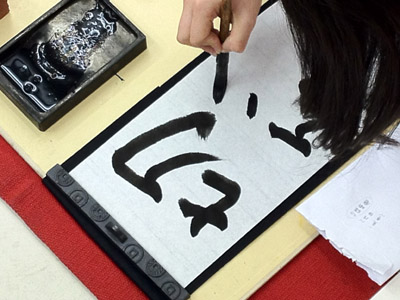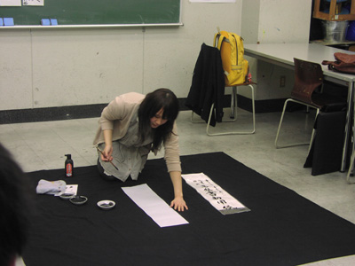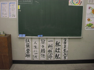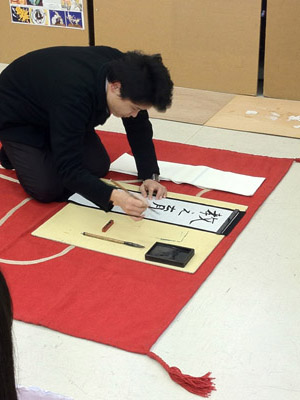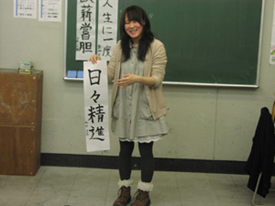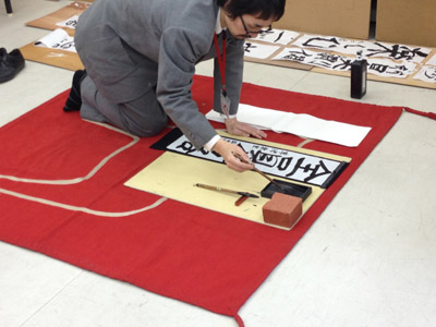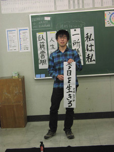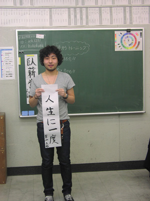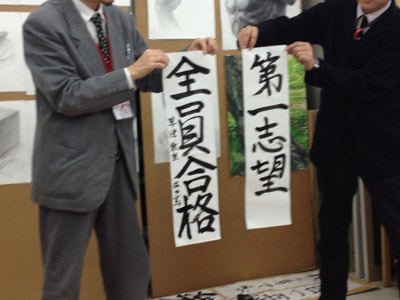 10 April 草津教室入学オリエンテーション 保田です4月7日(日)に行われた草津教室入学オリエンテーションを報告します。まずは京都アートスクール学長の袖長先生挨拶。そして教室長(アスク副学長でもあります)の保田の挨拶。草津教室での入学オリエンテーションはまだ2回目なのです。そして北山教室(七条生も合同)と比べるとはるかに小規模。とはいえ、そこにある緊張感にかわりはない。保田のなんとも渋い表情が緊張を物語っています。実技部長の坂口先生からは挨拶に加えてアスク授業のシステムや画材についての説明もありました。ここで第一部終了~休憩。北山や草津では、入学オリエンテーション後の「お花見」が恒例なのですが草津では「書初め大会」を行いました。年度はじめのこの時期、1年の決意を書にしたためることは、非常に意義あること。北山の高卒クラスでも毎年授業で行っています。「書初め」をすることはあえて当日発表。休憩しながら、したためる言葉を考案。「お花見」のかわりといってはなんですが、桜餅やお団子とお茶を用意しました。生徒達は意外と余裕、かなり考え込んでいたのが坂口先生。その真剣な表情。その坂口先生をトップバッターとして、順々に書いていく。言葉や字体に個性が表れますね。完成後は、作者にその意味を語ってもらいます。坂口先生は「教え育てる」。「教える」ばかりじゃだめで「育てる」という観点が重要という坂口先生自身の思いがしたためられている訳です。教育(きょういく)という言葉の中に最初から含まれている意味(=含蓄)なのですが、ついつい忘れがちですね。教えるばかりじゃ自己満足に過ぎません。なるほど…。というように、言葉ってすごいね。いつも、軽く使い流してしまっていますが…。そんな言葉を、心をこめてしたためる「書」は「お花見」にも負けない重要な日本文化だと思います。最後は教室長の保田。はじめの挨拶でも述べた、保田の今年度の目標を2枚の紙にしたためました。これは、必ず実現したいのです。講師生活20周年記念として。(自己満足?)しかし…いつになく、すらすら書く保田に疑問を感じた坂口先生によって、暴露された秘密…。書道の先生に書いてもらった「お手本」の存在。バレたらしょうがないので「お手本」も見せました。神戸在住の先生に通信で習っているのですが、お願いした手本が届いたのは前日。一夜漬けでがんばりましたが、ものすごく見劣りしますね。しかし、気持ちはこもっています。なんてことは技術を教えている先生の言うことじゃないのかもしれませんが…。いや、そうではないと思う。まずは、気持ち。そして、努力があって、技術が身に付く。私の場合は、月1回のペースなので、20年ぐらい後には、まあ、見られるものが書きたいな、と思ってやってます。そんなマイペースな教室長ではありますが、一方で受験が短期勝負であることは、よくわかっているので、みなさんには1年で合格してもらえるようがんばります。そして、その後は、恐ろしく長期の勝負がまっている。みんなも、がんばろう。しばらく「書初め」展示しておきます。欠席者は最初の授業日の休み時間などに書きますので、そのつもりで。(坂口先生の横のスペースは林先生の場所ですので、よろしくお願いします)保田 [0回] 2012/04/10 (Tue) 22:43 アスクでのこと Comment(0)