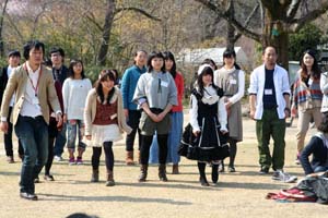 07 April 入学オリエンテーション in 彦根教室 こんにちは。彦根教室の池田です。本日は、京都アートスクールの滋賀にある2教室(彦根教室、草津教室)で、入学オリエンテーションが行われました。彦根教室の様子を少し紹介。 先生の紹介や、年間スケジュール、教室利用についてから実技授業、画材のことまで、1年間アスクでよりよく過ごすための大切なお話の時間。皆、真剣な表情で聞いてくれました。そして、オリエンテーション後は、彦根城の横にある公園でお花見!! 皆で楽しく乾杯~!!だったんですが、実は彦根の桜はまだまだ蕾状態…。かろうじて少し咲いている桜の木の下にシートを広げて、先生たちの作ってきたお弁当をほおばりました。そして、なんと一人の生徒がこの日のためにクッキーを焼いてきてくれました!!ありがとう。とっても美味しかったです。しかし、桜の開花状況が物語っているように、異常に寒い!!土日だというのに、周りにはお花見している人はおらず、なぜか観光客に写真をとられます。そんなに珍しいですか??確かに、厚めのコートを着ていましたが、お箸を持つ手が震えました。あまりの寒さに、ご飯を食べた後に皆で少し身体を動かして楽しむ~のはずが、教室へ非難。教室にてかるく談笑したあと、解散になりました。さて皆さん。明後日から前期(1学期)授業の開始です。やる気がみなぎってきたでしょうか!?ちなみに、明日は北山教室で入学オリエンテーションですね。北山でもオリエンテーション後に植物園へお花見に行きます。そして、毎年、職員の皆が持ち寄るお弁当はバリエーション豊かで、色んな意味で「うまい」です。参加する皆さんは楽しみにしておきましょうね。<イケダ> [0回] 2012/04/07 (Sat) 16:39 彦根教室 Comment(0)