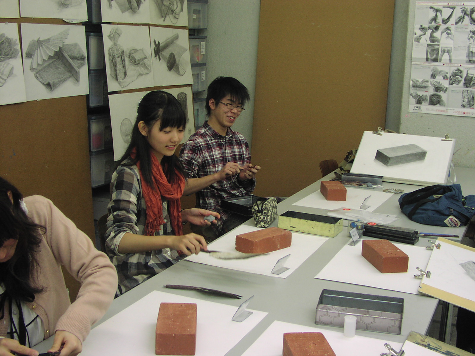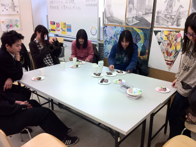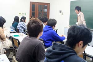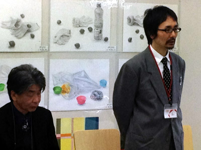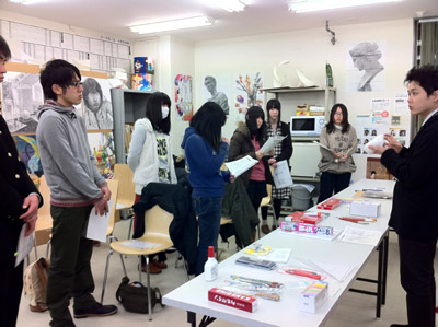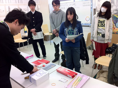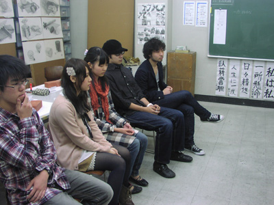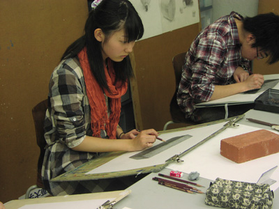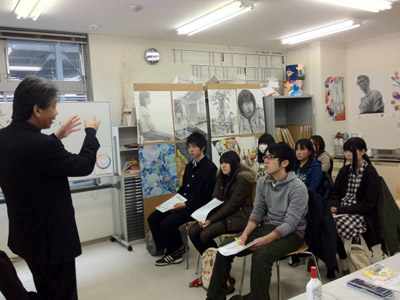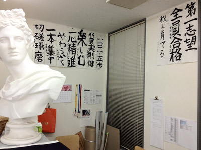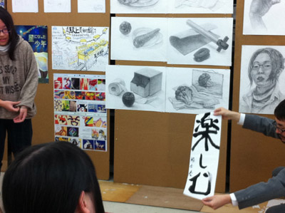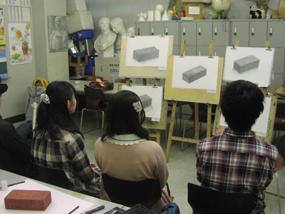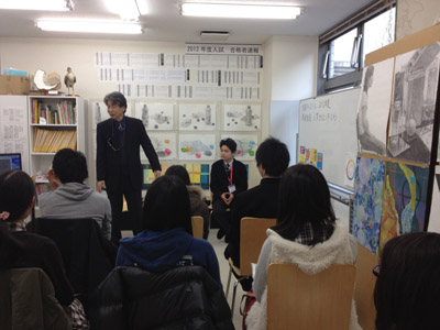 11 April 七条教室 スタンダードコース 始動 こんばんは。実技講師の上杉です。今年度より、新たに開講された、七条スタンダードコースの様子をお伝えします。まずは初日の授業風景から。自己紹介と書初めをしてもらいました。↓ 授業3日目の本日の風景 授業開始15分前には皆集まり、談笑しながら鉛筆を削り、授業準備をしています。まだ出会って3日目ですが、皆、打ち解けて仲良くなっています。制作風景<講評風景七条スタンダードは、5名という少人数のクラスです。講評は時間をたっぷりと使い、1枚1枚の作品を見る事が出来ました。 帰る前に、5人全員でアドレス交換。なにやらアスクの実技授業の始まる前の午前中に、京都駅前のカフェに集まり学科の勉強会を開く計画のようです。一番年長者のO君の発案。皆も乗り気です。年齢層は厚く、性格もバラバラな皆ですが、和気藹々としてます。よいクラスだと思います。切磋琢磨しながら、時には補い合いながら、頑張っていけたらいいですね。これからの1年間、よろしく!!上杉 [0回] 2012/04/11 (Wed) 19:00 アスクでのこと Comment(0)