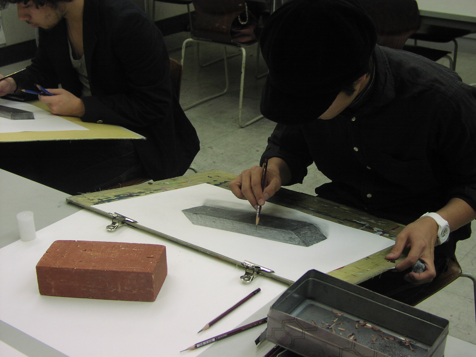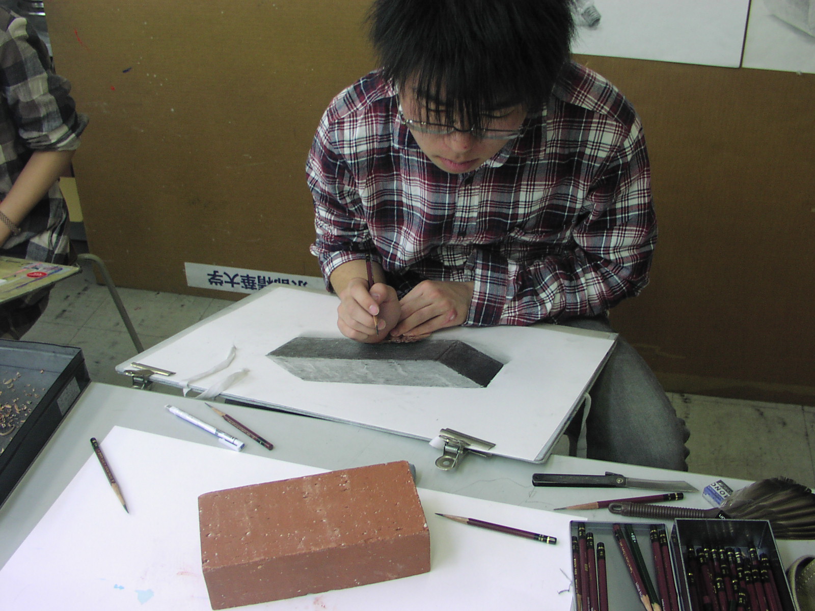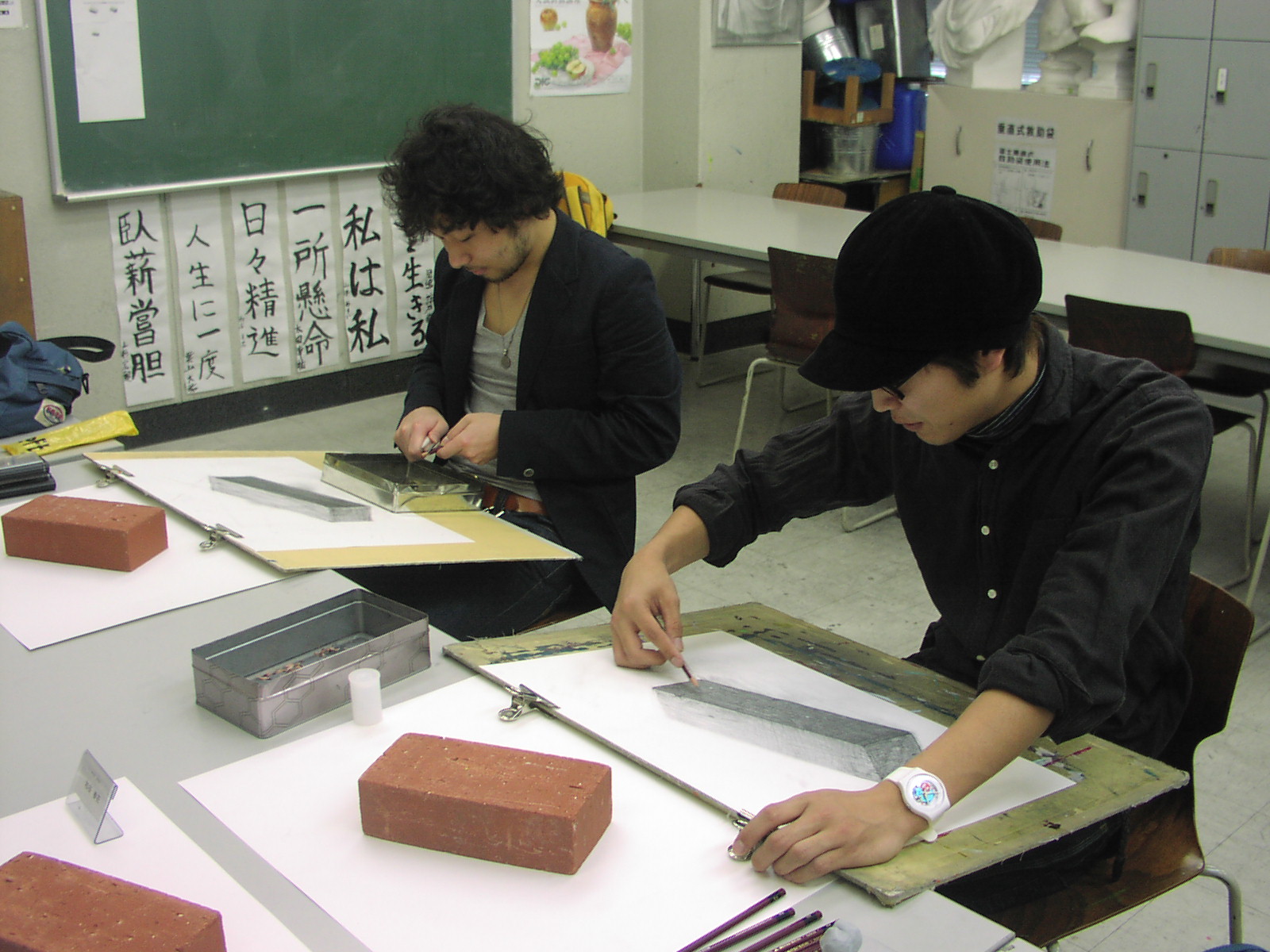 11 April 七条教室 スタンダードコース 始動 こんばんは。実技講師の上杉です。今年度より、新たに開講された、七条スタンダードコースの様子をお伝えします。まずは初日の授業風景から。自己紹介と書初めをしてもらいました。↓ 授業3日目の本日の風景 授業開始15分前には皆集まり、談笑しながら鉛筆を削り、授業準備をしています。まだ出会って3日目ですが、皆、打ち解けて仲良くなっています。制作風景<講評風景七条スタンダードは、5名という少人数のクラスです。講評は時間をたっぷりと使い、1枚1枚の作品を見る事が出来ました。 帰る前に、5人全員でアドレス交換。なにやらアスクの実技授業の始まる前の午前中に、京都駅前のカフェに集まり学科の勉強会を開く計画のようです。一番年長者のO君の発案。皆も乗り気です。年齢層は厚く、性格もバラバラな皆ですが、和気藹々としてます。よいクラスだと思います。切磋琢磨しながら、時には補い合いながら、頑張っていけたらいいですね。これからの1年間、よろしく!!上杉 [0回] 2012/04/11 (Wed) 19:00 アスクでのこと Comment(0)