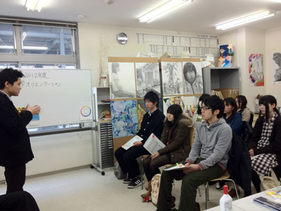09 April 4/8 北山入学オリエンテーション 4/8(日)は北山教室の入学オリエンテーションでした。北山教室と七条教室合同で入学オリエンテーションをしたので、大教室がいっぱいになるくらいの参加人数です。 スタッフと生徒達がこれから受験に向けて、新たにスタートをきりました。芸術をめざす君たちは予測もつかない困難に直面することになるだろう何度も投げ出したくなるだろうその時こそ君の才能の試練の時だ孤独感、絶望感に苛まれるだからこそ友が大切なのだだからこを師が必要なのだ京都アートスクール パンフレットの1ページ目に書かれている一部です。これから受験をする人たち、また、大学に入っても通ずる言葉だと思っています。これから待ち受ける受験までに長い道のり、一歩一歩踏みしめて一緒に頑張っていきましょう。 毎年恒例、植物園でお花見です。スタッフ手作りのこだわりお弁当がもりだくさん! 30人(もっと…?)規模のハンカチ落とし。全力で走ってこけて…元気があって見てて面白かったです。 だるまさんがころんだ。これもまた人数が多い!そして今日は早速、一番初めのST/SPコース対象の学科授業が始まりました!今日は選択科目の日です。小嶋先生の数学指導にも熱が入っています。実技と並行して、学科対策も頑張ろうね!上田 [0回] 2012/04/09 (Mon) 12:29 アスクでのこと Comment(6)
