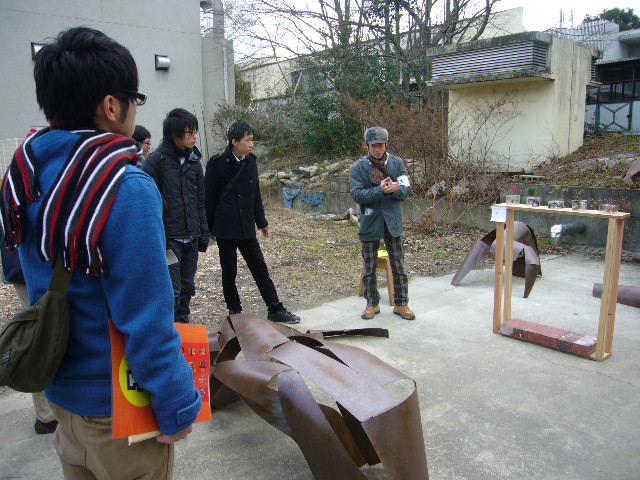 23 February 京芸制作展バスツアー 先日の京芸制作展バスツアーの報告です。 京都市美術館に集合し、アスクからは引率者(林)を含め七名が、銅駝高校の生徒さんに混じり行動しました。 午前中は京芸学生さんの引率で、班に分かれてそれぞれの専攻をまわりました。それぞれの専攻につき作者お1人ずつから作品の説明を受けました。苦労話、作品制作にかかった予算など貴重なお話をうかがえました。 アスクで講師をされている先生方の作品も確認。また、各賞にアスクの卒業生がたくさん入選しておられました。 午前後半は各自で自由に見てまわり、予定どおり13:00にバスにて京芸へ向け出発しました。 大学での展示は修士や博士の作品が主であったようです。(日本画は全部、デザインの大半は美術館での展示でした)こちらは、作者さんのトークは基本的になく、係りの学生さんの引率で簡単な実習設備の説明を受けながらまわりました。彫刻科の展示では、たまたまそばにいた作者さんをつかまえて、トークしていただくこともできました。 15:30ごろ、銅駝の生徒さん共々集合し、全員解散しました。展示自体は17:00まで見ることができたので、アスクの生徒何人かはしばらく見てまわっていたようです。 生徒からは、初めて見るようなものもたくさん見られて、大変面白かったとの声がありました。これから進路を定めるための、よい情報のひとつになったと思います。高校一、二年生は今のうちに色々な大学を調べたり、こうしたイベントに参加してみましょう。 お世話してくださった京芸の学生さん、混じらせてもらった銅駝高校 のみなさん、ありがとうございました。 ところで前期試験間近の現在、今日も七条教室、草津教室では京芸志望以外の、たくさんの受験生が多様な国公立志望校対策を行っています。広島市立大学、尾道大学、岡山大学、滋賀県立大学、金沢美術工芸大、京都工芸繊維大学、京都教育大学、大阪教育大学、三重大学、愛知県立芸術大学、静岡文化芸術大学・・・・・とにかく様々です。様々な対策に様々な方向性で取り組んでいる様々な生徒を見て言えるのは、この時期、みんな見るたびに総じて何かがレベルアップしているということでしょうか。後退や足踏みしている人が一人たりともいない。これは、当たり前のことのようで凄いことだと思います。林 [0回]PR 2012/02/23 (Thu) 16:44 アスクでのこと Comment(0)