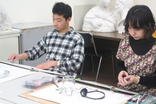 18 February いよいよ こんばんは。彦根教室の森です。今日はまた雪がちらつき、思わず、もうやめてくださいと呟いてしまいました。京芸入試までいよいよ1週間をきりました。今年は本当に雪が多かったので、入試当日はどうか降りませんように。さて、今日の写真は色彩の講評中のものです。 みんな次第に構成や色の幅も増えてきたので、作品として見応えが出てきたように感じます。立体も、慣れない素材でもおもしろい使い方ができるようになってきました。私が思うに、作品は自分の心をまさに表現するものだと思います。当たり前なことかもしれませんが。暗い、憂鬱な気分でいると自然と色も沈んだ暗い印象となります。時間内にできるかな、どうかな…と不安なまま進めると、最初の自分の予感の通り仕上がらなかったり。ハッピーな時や清々しい気分の時は、元気な色使いに。構図や立体も伸び伸びとした印象になります。作品は正直ですね。技術的な向上ももちろん大切ですが、精神的な強さも必要です。疲れと緊張が一層高まっている時だからこそ、自分の心の状態も把握しておきましょう。やはり、印象が強く残る作品というのは、絶対描ききるぞ!と自分に宣言できている人のように感じます。これまでたくさん描いてきました。その量が多ければ多いほど、きっと自信となっているはずです。悔いのないよう、残りの6日間ものびのびとした気持ちで取り組んでくださいね。<森> [0回]PR 2012/02/18 (Sat) 22:25 彦根教室 Comment(0)