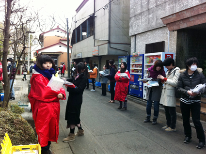 13 February 多摩美・武蔵美 試験 サイトウです。 京芸クラスは先日、模試も終わりました。 大阪教育大学・京都教育大学・京都工芸繊維大学…などなど、 国公立大 前期日程受験生は、入試直前ですね。 そんな中まさに今試験期間中なのが、(もう終わったとこもあるけど) 多摩美術大学 と 武蔵野美術大学! 2/10(金)、11(土)に応援&パンフレット配布に行ってきました。 多摩美術大学受験生が大多数通る橋本駅にて。 いろんな予備校や不動産の業者がパンフレット配布していました。 関東以外で配布に来ているのはaskだけ… ちょっと心細かった。しかし先頭で(!)配ってきました!!笑 受験生にも会えました。遠方の地で会えると、ことさらうれしくなります。 試験は難しかったようですが、 ずっと記憶に残るいい経験してきたんだろうなっていういい顔してました。 元気をもらえました。 こちらは武蔵野美術大学前。 一番右の3人は、今回の配布を手伝ってもらったask出身のタマビ・ムサビ大学生たち。 タマビのグラフィック、ムサビのデザイン情報、ムサビの空間デザイン在学中。 最近の課題の話など、生徒から生の情報を得られるのはいいもんです。 中でも、「いい経験してるなぁ~」と思ったのが、 舞台衣装をされてる先生のアシスタントバイトをして、いろんな舞台の裏側を見ているという空間デザイン学科生の話でした。 東京ならでは、学生ならではだなー!とわくわくしました。 もちろん、きらびやかなものではなく、厳しくしんどい話でもあるのですが。 それもまた、いいもの見ているなって思いました。 多摩・武蔵野… 案外倍率が低い学科もあるのです。 ■2012タマビの倍率 ■2011ムサビの倍率(2012はまだ出ていませんでした) 東京芸大へ受かった人がどばーっと抜けていって、 かなりの補欠合格者が出たりするのも現状。学科によるみたいですが。 (公開されている倍率より実質倍率が下回る場合があるということ) 関東は受験がまず激戦ムードなので、 生徒自身も意識が自然と高くなり、大学生になったあとも、 「東京芸大今どんな課題やってるんだろ?」とか 「卒展うちの大学の勝ちだな」とか自分で足を運んだりツテをつくったりして 情報収集するそう。えらいよなぁ… そして東京旅最後は、 気になっていたジャクソンポロック展へ。東京国立近代美術館へ。 価値なきところに価値を生み出す… 結果的に認められるかなんて分からない… そんな中で絵に向かう強さというか欲求というか、 そういうものを感じてまいりました。 今年もあとわずか、世界は広いし自分はちっぽけ。 隣の芝は青くも見える。けど、別にきっと青くはない。 青がいいのかもわからない。 おのおのがおのおののためにふんばっていきましょう。 <サイトウ> [0回] 2012/02/13 (Mon) 16:30 大学のこと Trackback() Comment(0)