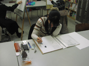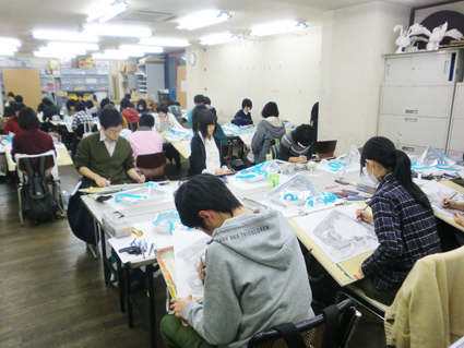 07 February 京芸模試 2日目 こんばんは。彦根教室の池田です。彦根教室でも京芸模試が行われています。北山教室ほどではありませんが、彦根教室2Fも京芸受験生がいっぱいです。本日は模試2日目午前中に着彩課題を制作し、 午後からは色彩課題を制作しました。 皆、いつもとは少し違う教室の雰囲気に高い緊張感を持って望めていましたね~。明日、立体課題を制作し、その後、木曜日には北山での講評会に参加するため、お馴染みになった京都までバス移動ですね。そういえば、バスといえば、今週の土曜日(2/11)に、現在京都市美術館と大学内で行われている、京都市立芸術大学の制作展のバスツアーにアスクの基礎生たちが参加させてもらえるそうな。バス代の500円は必要だそうですが、美術館、学内でそれぞれギャラリートークが聞けたり、作品についての解説があったり、質問ができたり、美術館→大学を直通バスで移動できたり、学内を見て回れたりと、ちょっといい感じのオープンキャンパスみたいですね。高校1、2年生の皆さんは、そろそろ志望校を決定するタイミングですよね(もう決めている人もたくさんいるかとは思いますが)。こういった、大学が企画する様々なイベントに参加して、たくさんの大学を回って、本当に自分に合いそうな大学を選らんでくださいね~。<イケダ> [0回] 2012/02/07 (Tue) 23:59 彦根教室 Trackback() Comment(0)