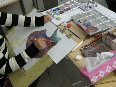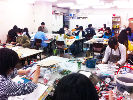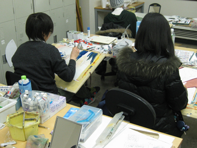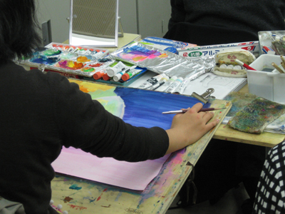 17 January 直前講習始まりました! こんばんわ。北山教室から、マシヤマです。昨日から直前講習がスタートしました。センター試験の翌日から、休む間もなく実技にどっぷりの大学受験生。昨日は描写。今日は描写&着彩。まずは「鈍った勘を取り戻す」という目的で制作しました。とはいえ、一回一回を大切に! ←U先生、シビアに評価中。 ←着彩も久しぶり。感覚再生中!みんなどうだったかな?苦労してた人も何人かいたけど、身体に染み付いた力は絶対にあります。①一度乗れた自転車は、一生乗れるもの。②数年ぶりにピアノを弾くと、指がもつれてヒドイ有様に。実技にも①と②の両方があります。来週からさらに受講者が増えます。北山、パンパンです!!! この画用紙800枚が2週間足らずで無くなる計算。これから受験当日まで、切磋琢磨して一緒に走り抜けましょう☆一番小さな教室でも、基礎の生徒が頑張っています。 ←こちらも活気があります。程よい緊張感がみなぎる基礎生の様子は、また後日お届けします。<マシヤマ> [0回] 2012/01/17 (Tue) 21:30 アスクでのこと Trackback() Comment(0)