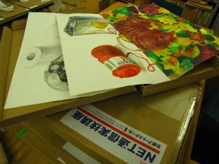 08 November NET生の作品 続々到着! 本日11/8(火)は立冬(りっとう)の始まりです。23日の小雪(しょうせつ)までの期間を指し、暦の上でも冬が本格的に始まりました。(まだ暖かさが残っていますが。)二十四節気をきちんと覚え、日本の四季を大切にしたいマシヤマです。冬到来とともにいよいよ受験の雰囲気が増してきました。【NET通信実技講座】の受験生もまたしかり。 今週は後期の二回目の作品提出日です。今日、北山教室に来ると、沢山の作品ボックスが山積みされていました!受験生、基礎生、全ての作品が集まっています。 ボックスを開けるときにはいつもワクワクします☆みんなが期日を守ってくれるので、添削担当の先生たちは嬉しい悲鳴です!今週末には指定スクーリングがあるので、添削ではなく、直接の講評になります。(スクーリングに来られない子には、添削してお送りします。)遠方の皆さん、気をつけて来てくださいね。待っています☆今日の北山教室・夜間の様子はこちら↓↓↓ 京芸補強は描写です。複数の白いモチーフは構成が大変!「自分でもどうなっているかわからない構成」は避けましょう。鉛筆の使い分けもテーマ。 幾何形の色彩課題。慣れないマスキングに挑戦中。この後、フリーハンドで塗ることにもトライします! 推薦対策と通常授業の生徒が肩を並べて製作中。隣でまったく違う課題をやっている生徒がいると、その課題がなぜか羨ましく思えたりするのですが……今日の生徒はみんな集中力が高いです!感心です!<マシヤマ> [0回] 2011/11/08 (Tue) 19:18 アスクでのこと Trackback() Comment(0)