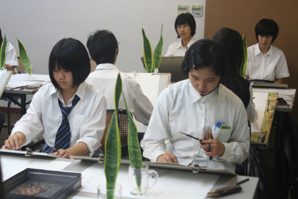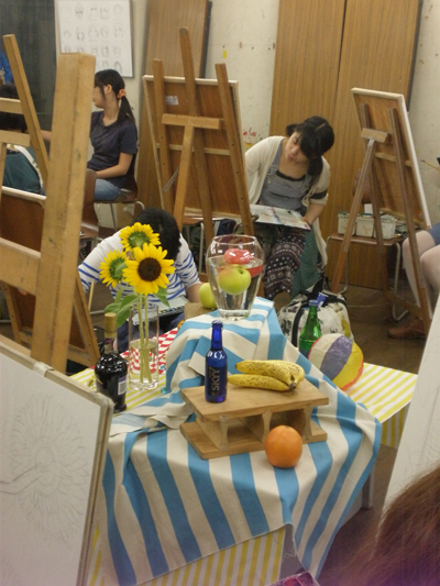 19 September 9/19無料デッサン講座! 本日は、京都アートスクール4教室で、 無料デッサン講座が行われました。 4時間弱でデッサンのプロセスを体験してもらうと同時に、 京都アートスクールでの指導の流れを体験してもらう機会なのです。 本日は北山教室の様子を見ていきましょう~☆ 今日は、高校2年生、1年生、中学3年生の皆さんが参加してくれました。 まずは導入。 制作スケジュールや、課題の出題意図や制作のポイントを伝えます。 そして、それぞれが制作開始。 そうそう最近、中国でデッサンを学んでいた留学生の子が入学してくれたんです。 中国では先生が一通りデッサンを描くのを生徒は後ろで見ているそうです。 先生の工程や技を十分に見た上で、 いざ自分も制作にとりかかるっていうスタイルだったそうです。 学んでいる内容は同じだけど、指導スタイルが違うんですね。 興味深い! そういう意味では、アスクでの制作は初心者の人も含め、 まず自分で貪欲に考えていかなければいけないスタイルですよね。 制作途中、講師が話しかけたり、席を変わって描いたりして指導します。 最後に講評。 写真みたいに、作品を貼りだして、導入のポイントをふまえて、 アドバイスをしていきます。 この時間、他の人の作品といっしょに遠くから自分の絵を眺めます。 客観的に自分の絵をみなおすことが大事です。 他の生徒の技や表現も見ることが出来ます。 普段も基本的にこの流れで授業がすすんでいきます。 このほか面談もました。面談では、受験についてだけでなく、 色彩制作についてなど、作品についての質問もあってなかなかいいコミュニケーションの時間になりました☆ 参加してくださったみなさま、ありがとうございました。 <サイトウ> [0回] 2011/09/19 (Mon) 19:23 アスクでのこと Trackback() Comment(0)