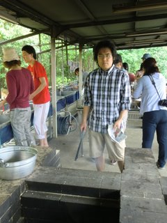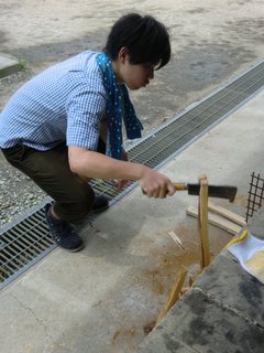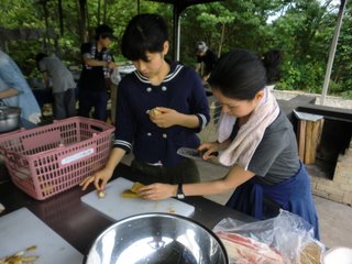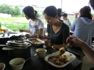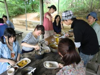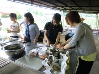 23 June STSP生 南山城 課外実習 6/22(水)、STSPの生徒は【南山城】での課外実習をおこないました。実習の目的は『皆での共同作業(カレー作り&スポーツ)を通じて、親睦を深めよう!』ですが、『色彩課題の資料探し』でもあります。 バスに揺られること2時間半、現地に着いて早々、カレー作りスタート。 『薪割り、米研ぎ、火熾し、食材切り』それぞれを全員が手際良くおこなっていました。チームワークに感心☆野外ではカレーの味も一段と美味しく感じます♪ その後、近くの体育館へ移動して、食後のスポーツをおこないました。体育館の中は予想以上に暑く、全員が汗だくに……。でも、身体を動かすのってやっぱり気持ちが良いですね! ところでみんな、色彩課題のモチーフやテーマは決まったのでしょうか?バスの窓からの景色、飯盒炊爨の炎、美味なカレー、運動でかいた汗……どれも素敵なモチーフです。温度や匂いが伝わるような、今しか作れない作品を作ってください。<全員集合♪<マシヤマ>(私にとっての印象的な風景は……『体育館の壁の、ボールによって開いたであろう無数の穴』のある風景) [0回] 2011/06/23 (Thu) 18:46 アスクイベント Trackback() Comment(0)