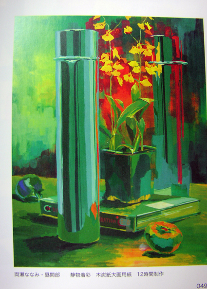 01 July 彩度の話 あつーい季節に突入しましたね。 先日引越しをしましたサイトウです。 暑い中、引越し業者のお兄さんのてきぱき働く姿に惚れそうになりました。 代金支払いのおつりの千円がお兄さんの汗でべっしょりでしたがそんなことは本望です。さてさて、今週一週間は前期と夏期講習の間のお休み的1週間です。 浪人生は帰省している人も多いみたいですね。 高校生にとっては「日程調整期間」でもあります。 これは前期中に高校のテストなどで休んでしまって、 出来ていない課題がある人が課題を制作しに来られるという スペシャルサービス的1週間です。 * * *今日は、色の三属性のひとつ「彩度」について考えてみました。 三属性とは「色相・明度・彩度」ですが、 アスクに通っている人はだいたい聞き慣れてきたワードかと思います。 この中で彩度という観点が一番サイトウにとっては難しい。 画面を仕上げるにあたって、彩度はどのように扱うと効果的なのか。 これが今日の思考のテーマです。 彩度=色のあざやかさの度合い 普段目にするものの彩度を確認しよう。 光のあたっているところは、発色がよく彩度が高く、 暗くなったり反射光になっているところは発色が悪かったり、 いろんな色が混ざって見えて結果的に彩度が低い。 これが日常の世界の彩度の秩序といえそうです。 着彩描写などではこの秩序をしっかり表現に用いることが重要ですね。 では色彩構成の「自由」な画面で、彩度の扱いにはどんな可能性があるのか。(1)そのままの秩序を用いて使う(2)秩序を反転させて使う 例 アスクの作品ではなく、他予備校のパンフに掲載されていた作品です 赤いところは本来空間的に奥で彩度は低いはずですが、 彩度の高い赤を使っています。 (3)画面上で新たな秩序をつくりそれに従って配色していく 例 アスクの作品ではなく、他予備校のパンフに掲載されていた作品です これは背景だけ「彩度の高い赤色」というルールのある絵かな… うーん、きっと一口に説明できるほど絵は単純ではないんだろうな もはや(3)にあてはまるかも正直よく分からん(4)1、2、3のごじゃまぜ使い ってな可能性があると思いますが、 言葉で枠組みをつけようとすると、縮こまってしまうかも。 こんなかんじで、本で読んだ知識とかじゃなく、 観察から得た自分なりの解釈を持っていくことが大事ですね。 私はすぐに本やNETで調べてしまいがち…… こんな作品アスクにないなぁ アスクの作品ではなく、他予備校のパンフに掲載されていた作品です 黒に挑戦している絵、低い彩度でまとめた絵。 自分でいろいろ考えられるようになってきたと自覚のある人は、 「低彩度」や「黒色」などに挑戦する夏にしてみてはいかがでしょう?! 頭がずきずきします…夏バテがきている… <サイトウ> [0回] 2011/07/01 (Fri) 21:07 アスクでのこと Trackback() Comment(4)